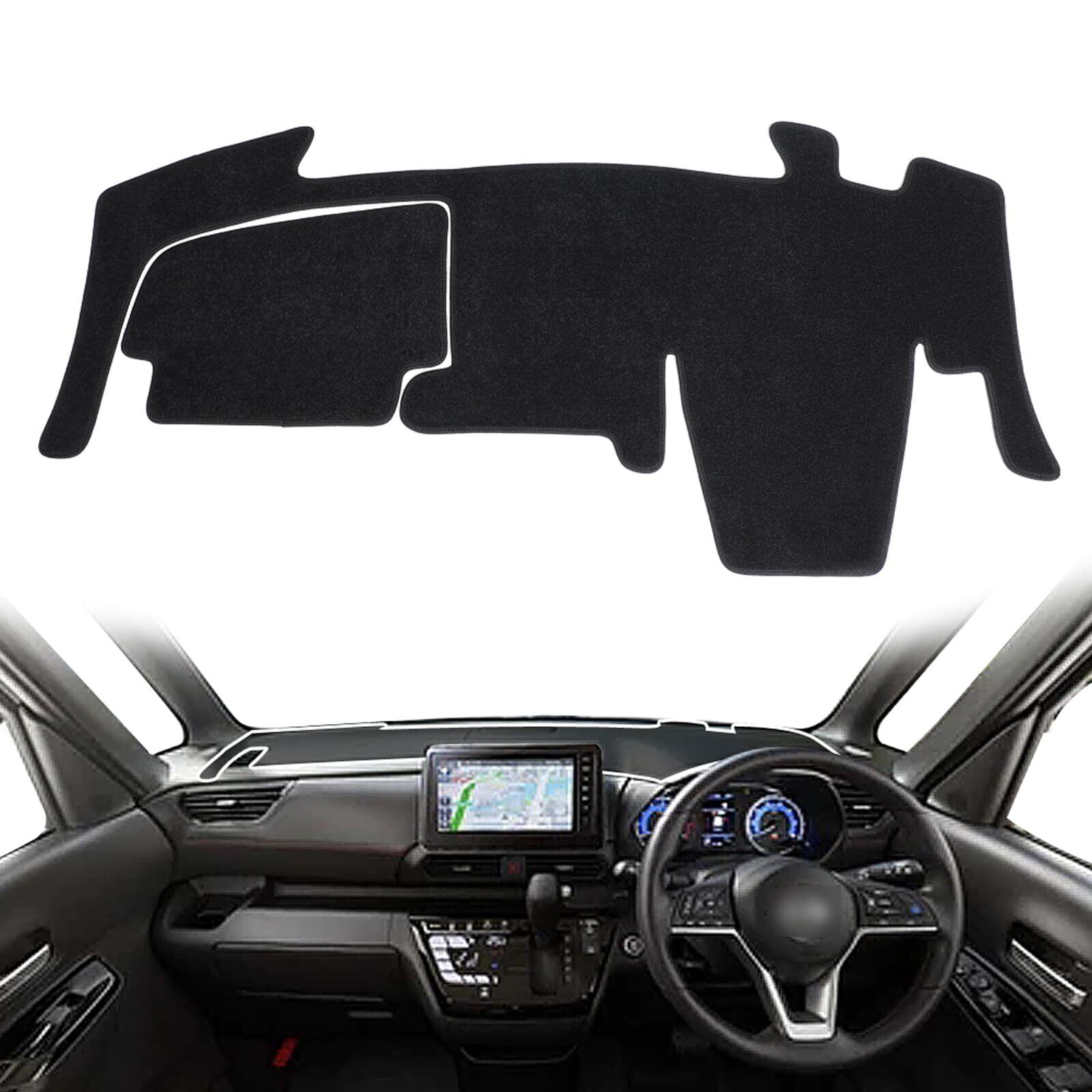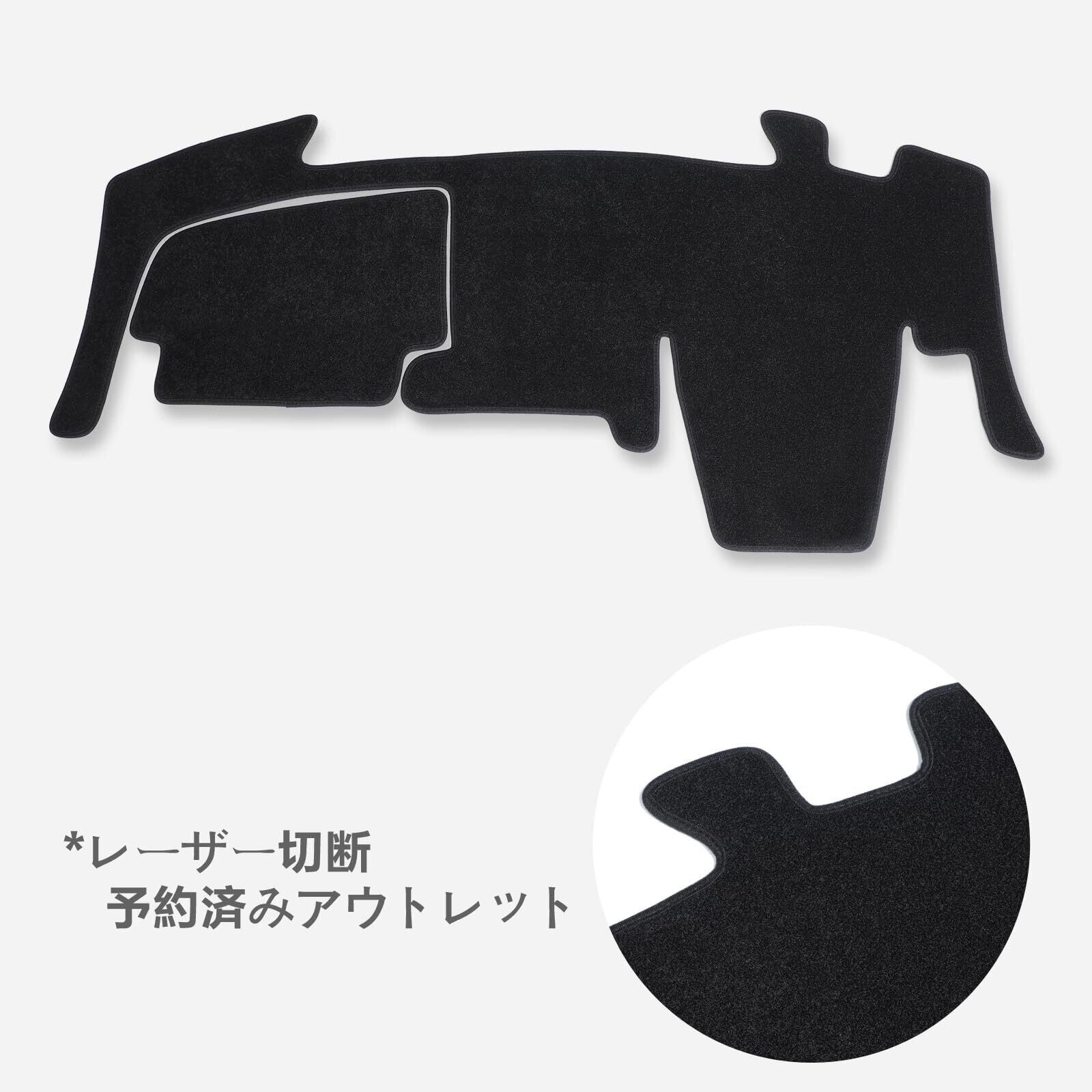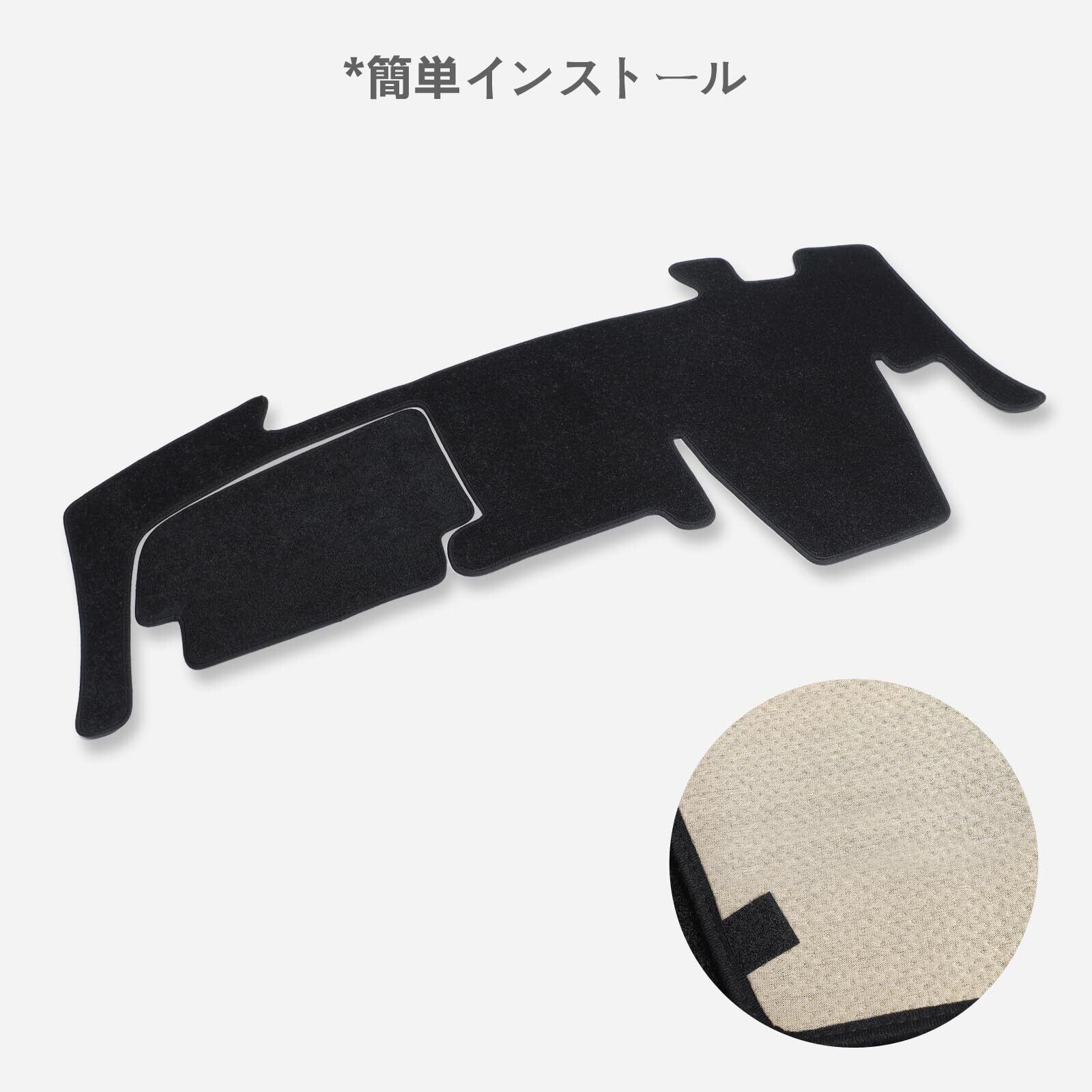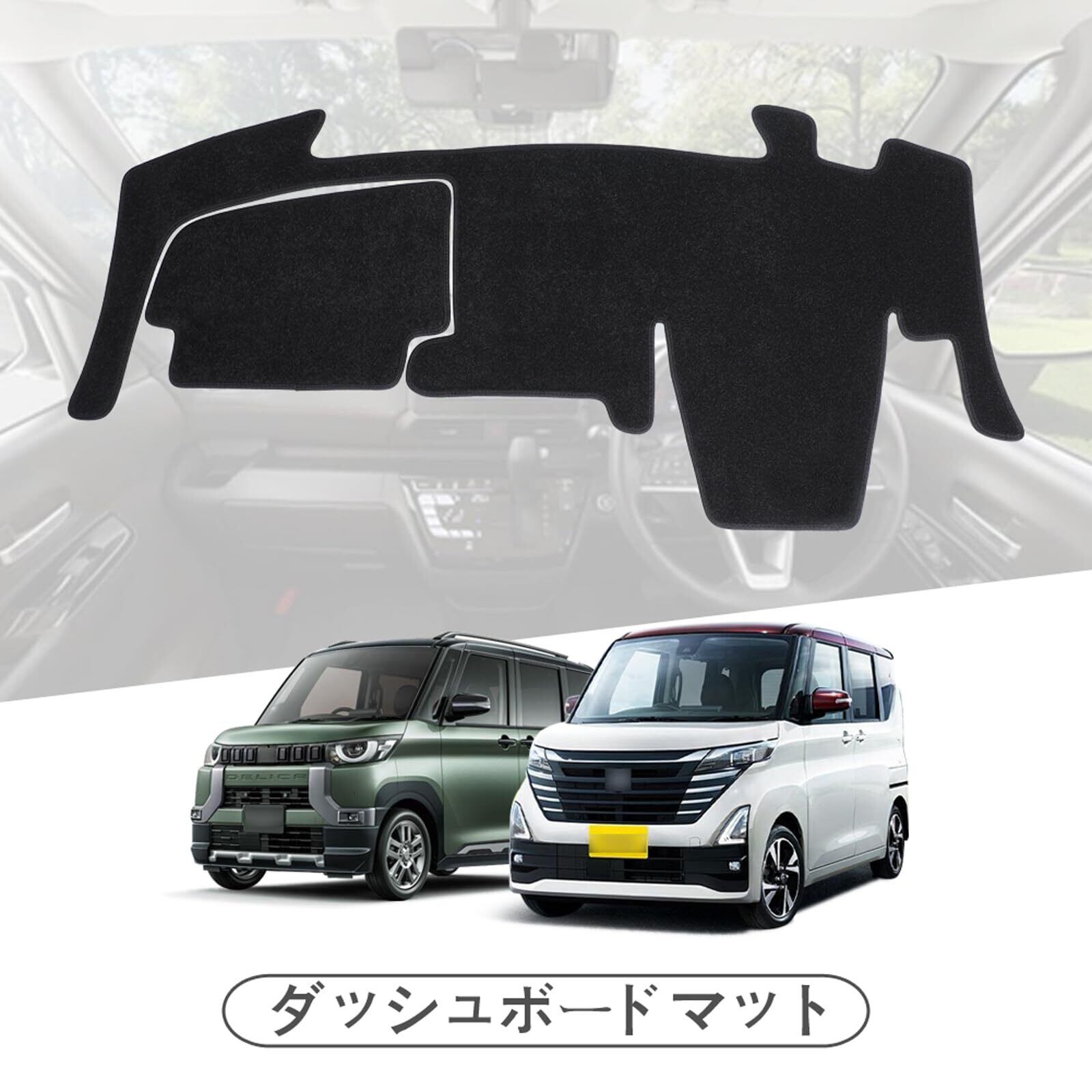 【対応車種】:三菱 デリカミニ / ekスペース / ekクロススペース B34A/B35A/B37A/B38A型 2020年-現行;日産 ルークス 3代目 B44A/B45A/B47A/B48A(BA1)型 (ダッシュボード中央にスピーカーなし)2020年-現行。【セット内容】:ダッシュボードマット(2点1セット)、マジックテープ(裏は強力両面テープ)。