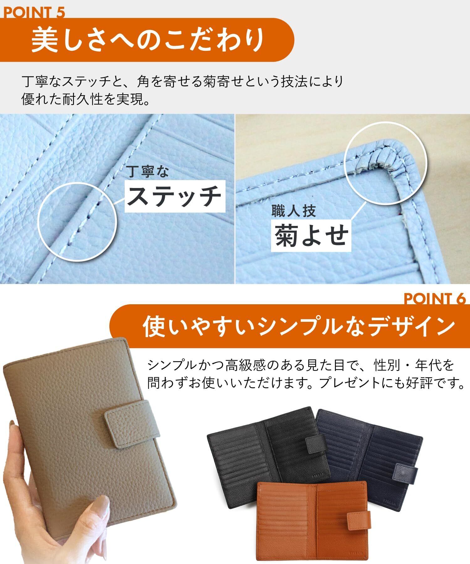 【特徴】大容量のカード類をコンパクトに収納。 二つ折り薄型で、カードは20枚収納可能です。収納時の厚さは約3センチ。鞄や財布もスッキリ。 オープンポケットが2箇所あり通帳やパスポートも楽々収納。旅行用としてもお使い頂けます。