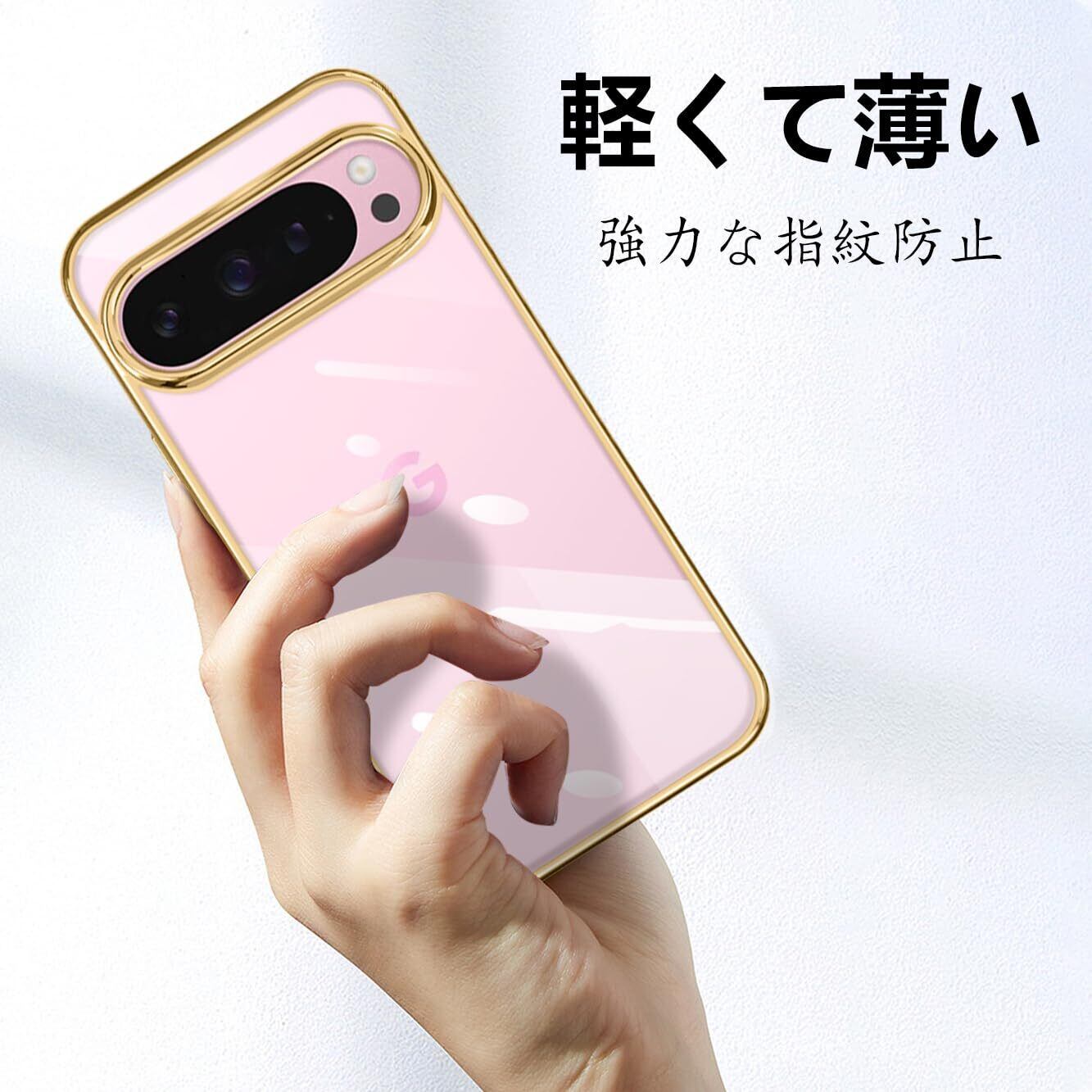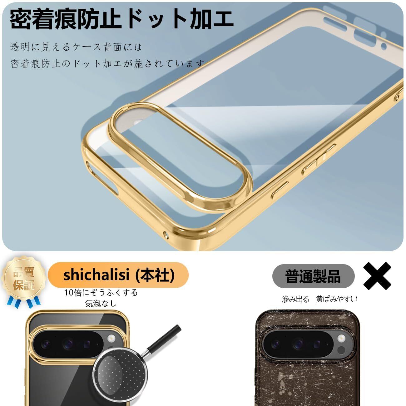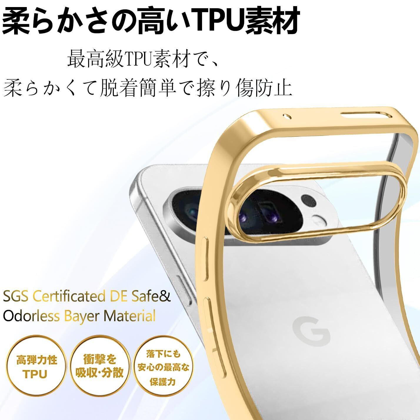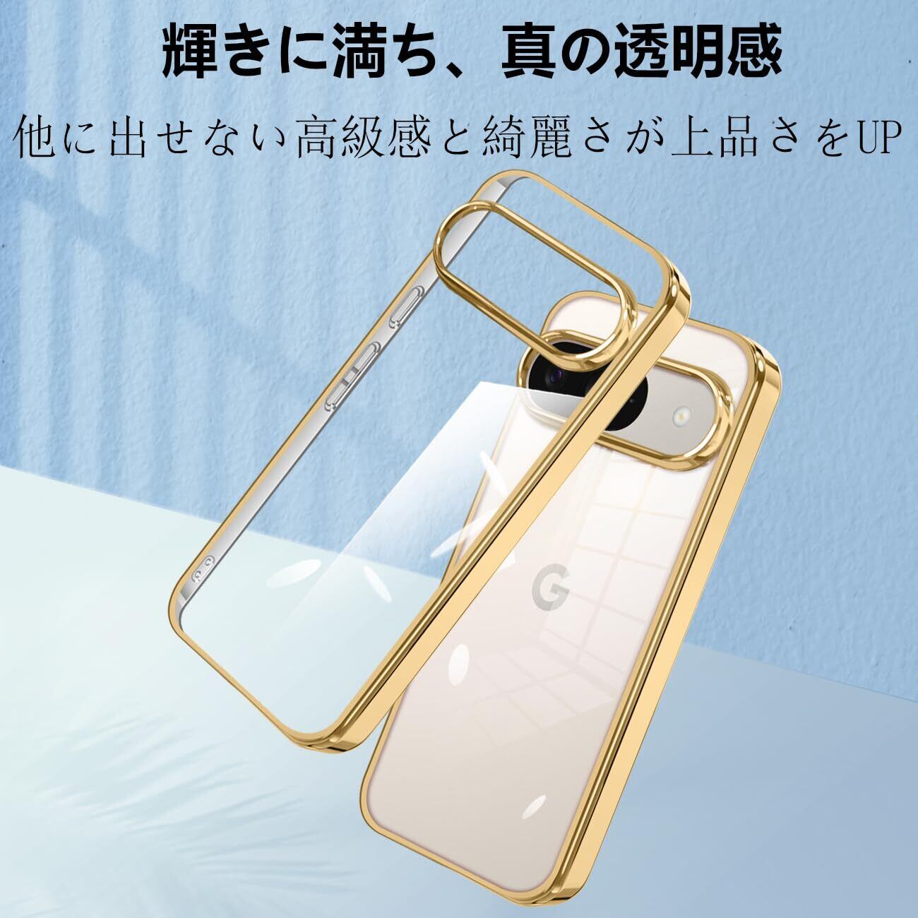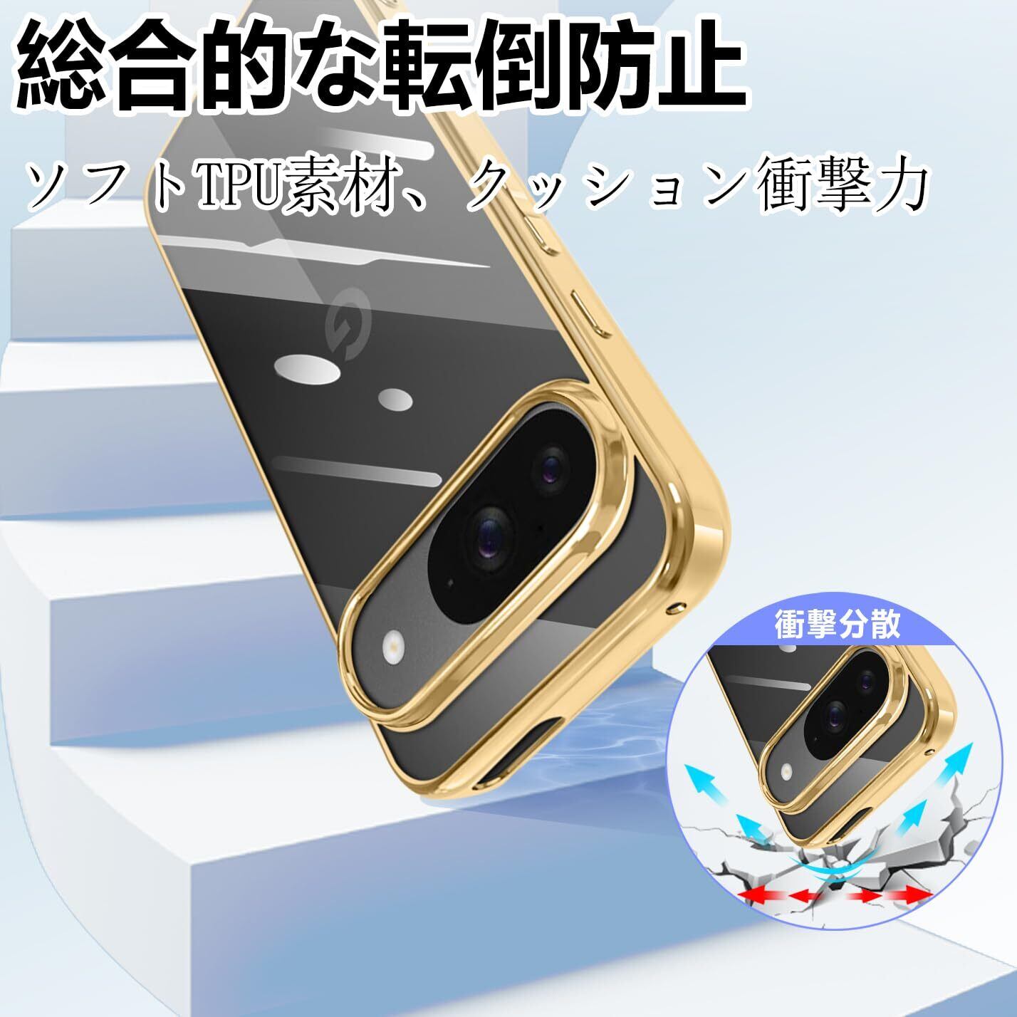 google Pixel 9 / Pixel 9 Pro ケース クリア グーグル ピクセル9 カバー スマホケース 耐衝撃 可愛い 人気 おしゃれ 透明 かわいい スマホカバー 薄型 背面ケース tpu 軽量 ストラップホール付き(ゴールド)