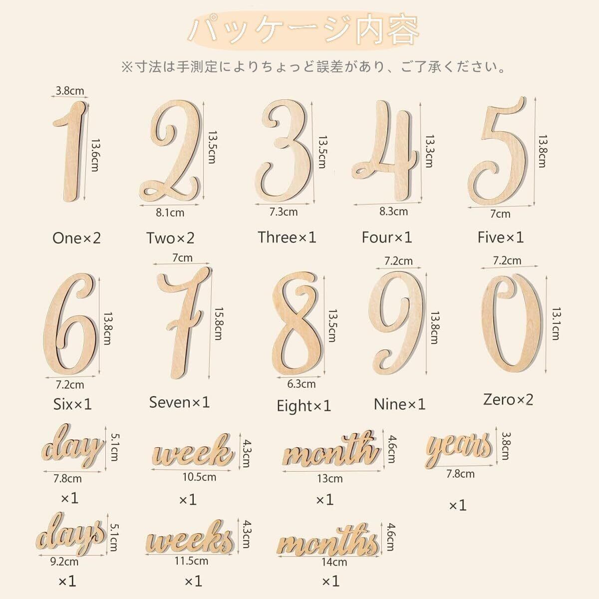 【成長記録】日、週、月、年のマイルストーンをマークする木製彫刻、赤ちゃんのお誕生に応じて自由に組み合わせてパーソナライズしていただけます。妊娠期から出産後まで、すべてのマイルストーンになるお子様の成長を記録できるし、すばらしい精美な芸術作品を創作できます。
