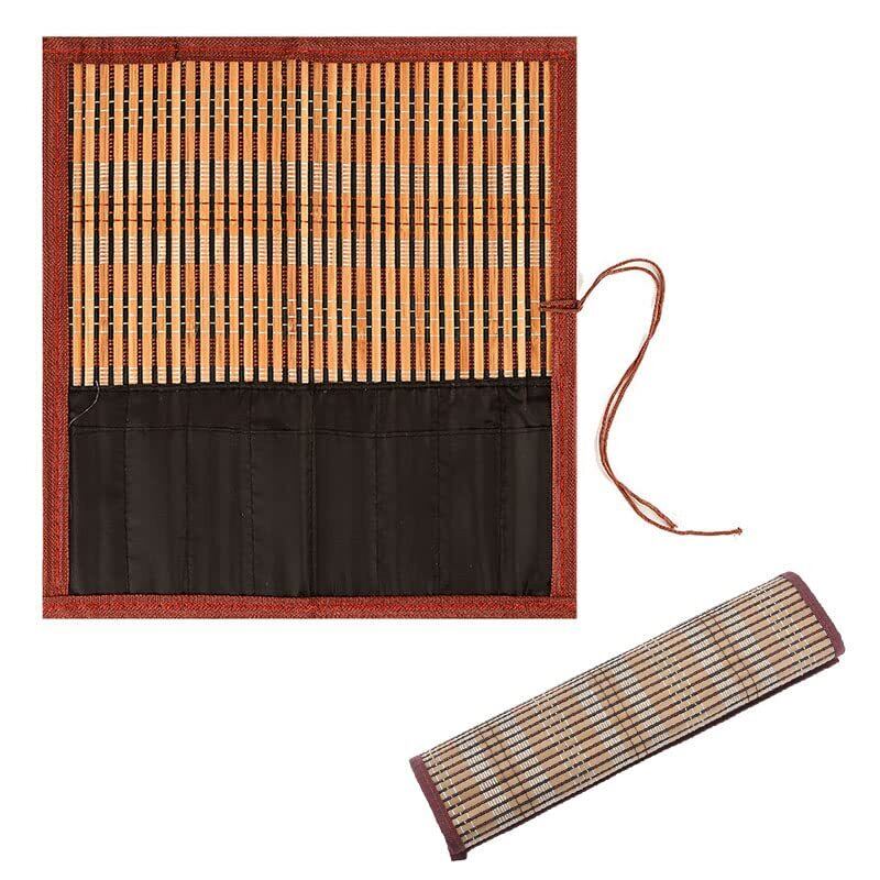 LIKENNY 筆巻き 竹製 筆 収納 持ち運び 習字 ペンケース 書道 保管 ポケット付き コンパクト 毛筆 細竹皮筆巻 33cm × 29cm 巻き 手織筆巻 筆入れ