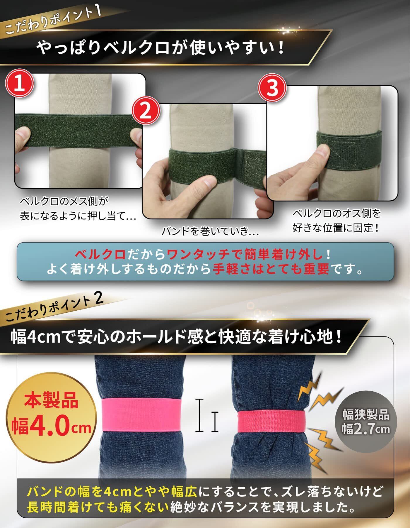 【抜群の耐久性!】ベルクロの部分を強化。自社の耐久テストで100回の着け外しでも新品のときと変わらない抜群の耐久性で、激しい運動のときのソックスバンドとしても安心してご使用いただけます。