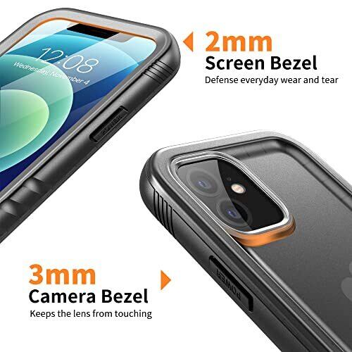 【画面保護機能 & クリアな音声】- 新素材PET製の内蔵スクリーンプロテクターは、耐傷性があり、触り心地も良好です。3mの高さから落としても割れません。また、四隅のバンパーフレームが保護を提供します。強化ガラスフィルムのように割れることはありません。充電ポート付近にはA+級透声膜などの特別なデザインが施されており、通話、映画、音楽の音質が他の12 / 12Pro用360度両面ケースや防水ケースよりも優れています。