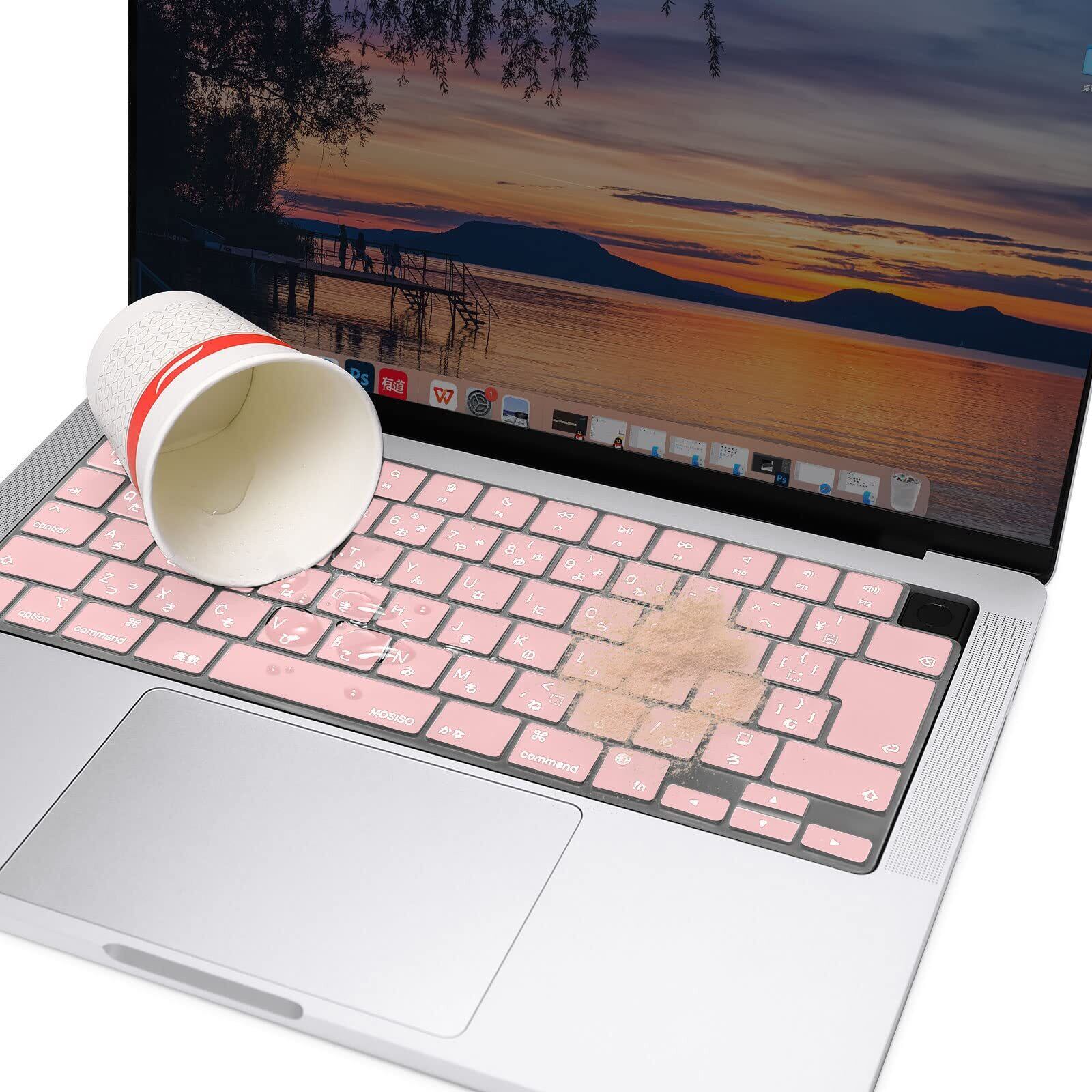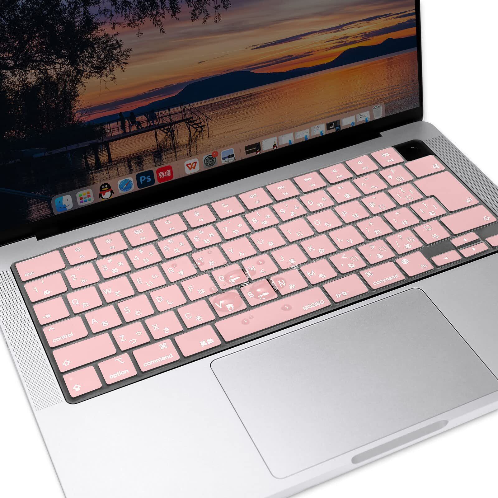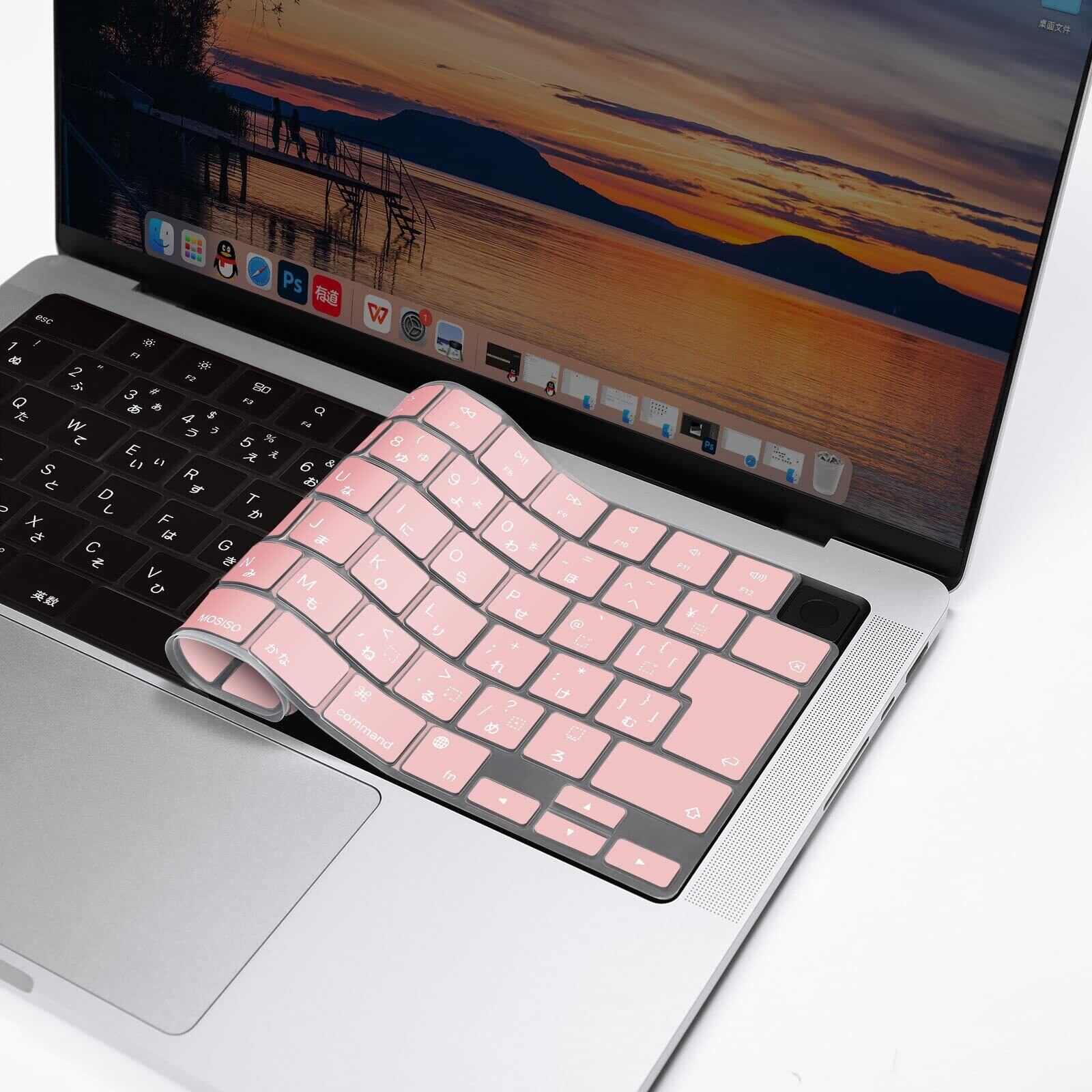 MOSISO ノートパソコン キーボードカバー 対応機種 MacBook Air 13.6/15(M3 M2チップ)A3113 A2681 A3114 A2941/ Pro 14/16(M4 M3 M2 M1チップ) 2025-2021発売、保護 防塵 耐水 シリコンスキン 日本語 JIS配列(ローズクォーツ)