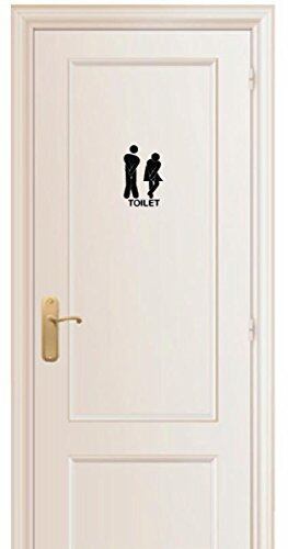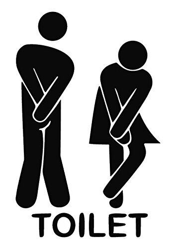 トイレ お手洗い Toilet 入口 表示 サイン sign ドア door おもしろ 漏れそう 「もう我慢できない」 シルエット ステッカー シール デカール 21×14cm ブラック