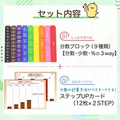HapiChil イメージできる分数学習 分数ブロック & 24ステップUPカード【ベテラン塾講師 監修】 (分数/小数/%対応)