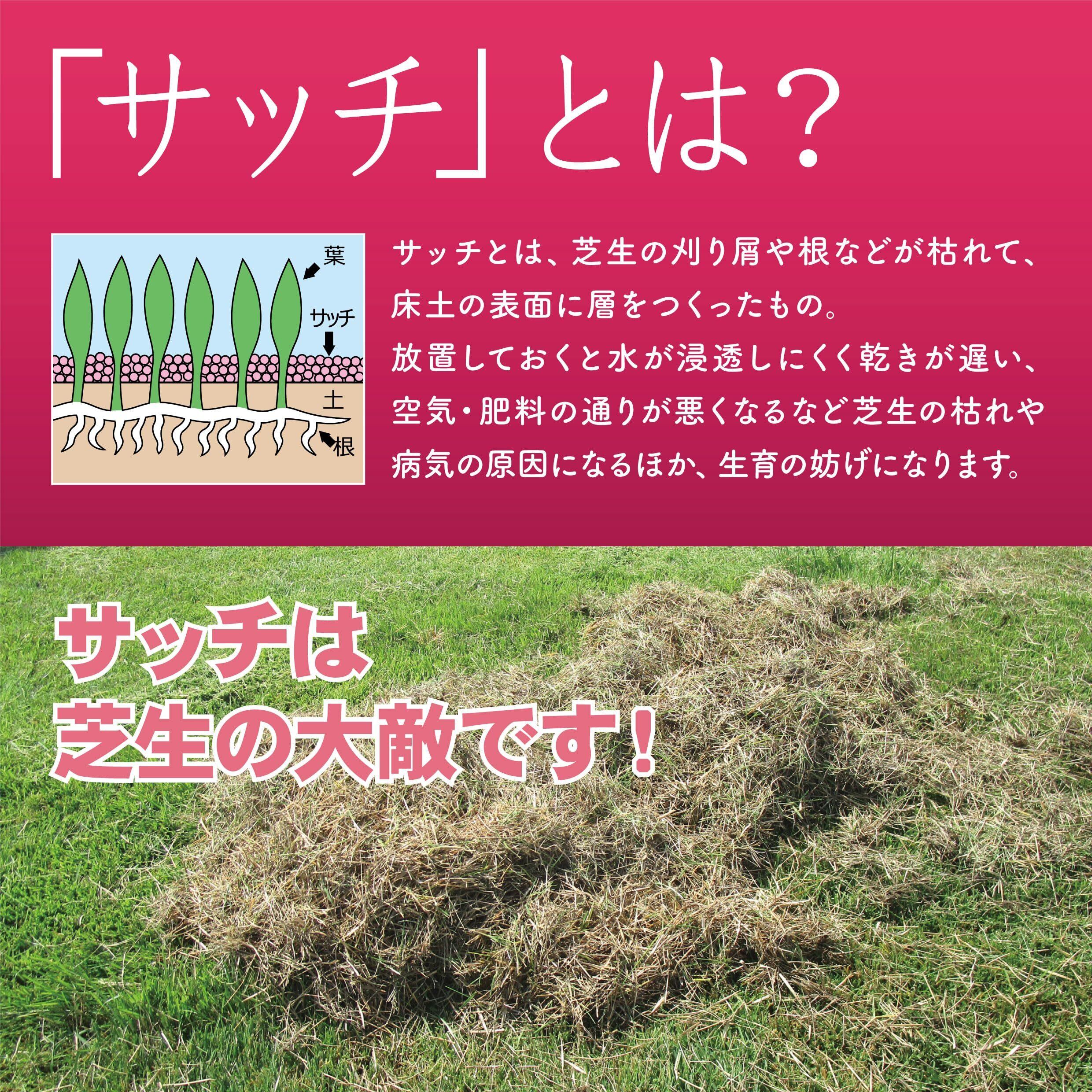 芝生が長いとサッチが取れない場合もありますので、25mm以下に芝刈りされてからご使用される事をお勧め致します。
