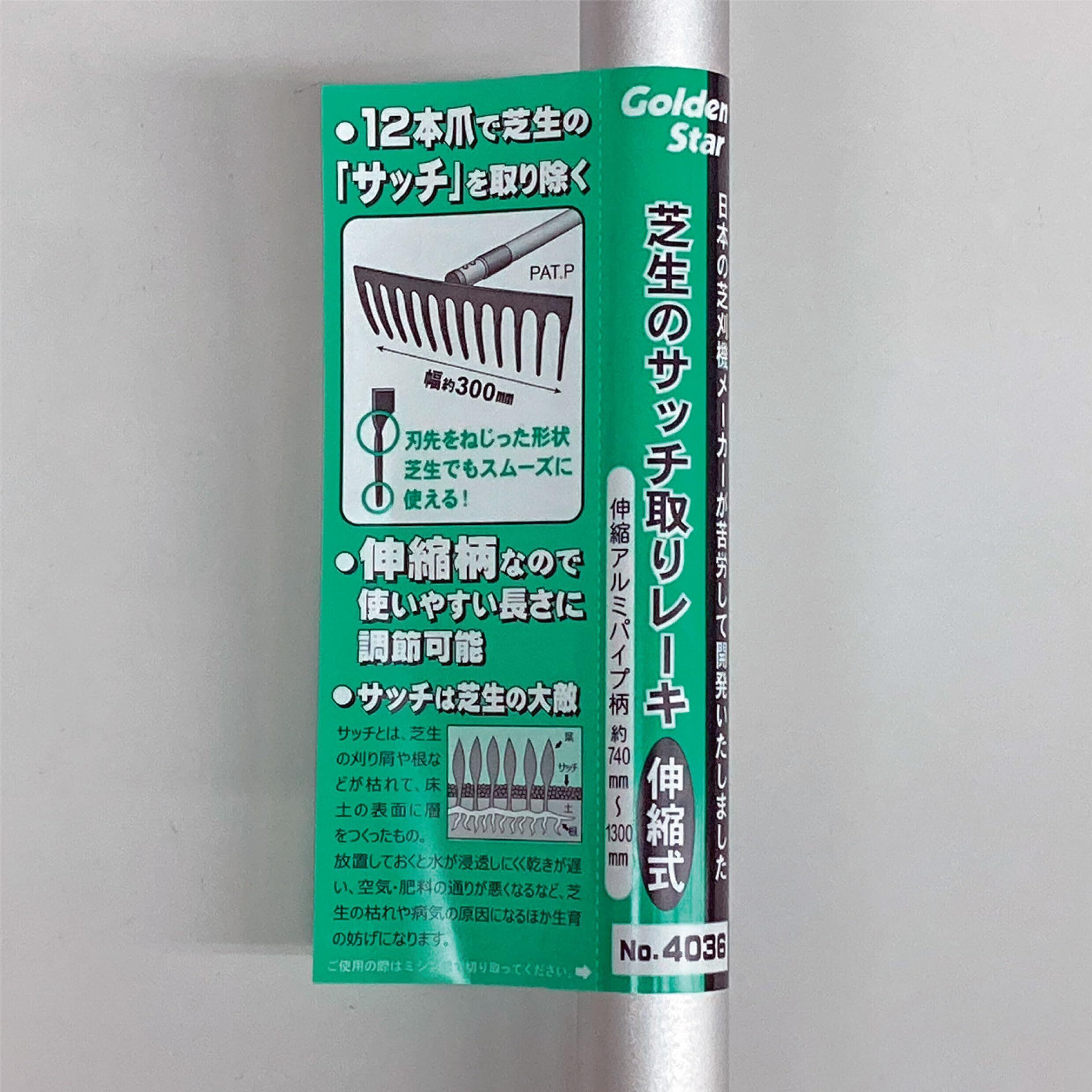 キンボシ(Kinboshi) ゴールデンスター(Kinboshi)芝生のサッチ取りレーキ12本爪伸縮アルミ柄付4036