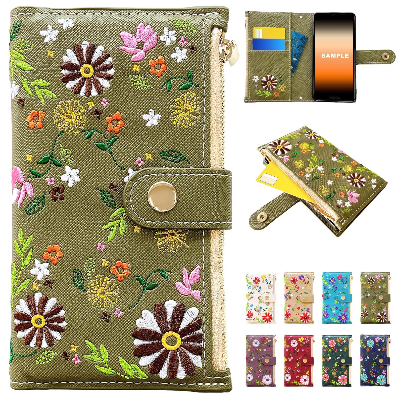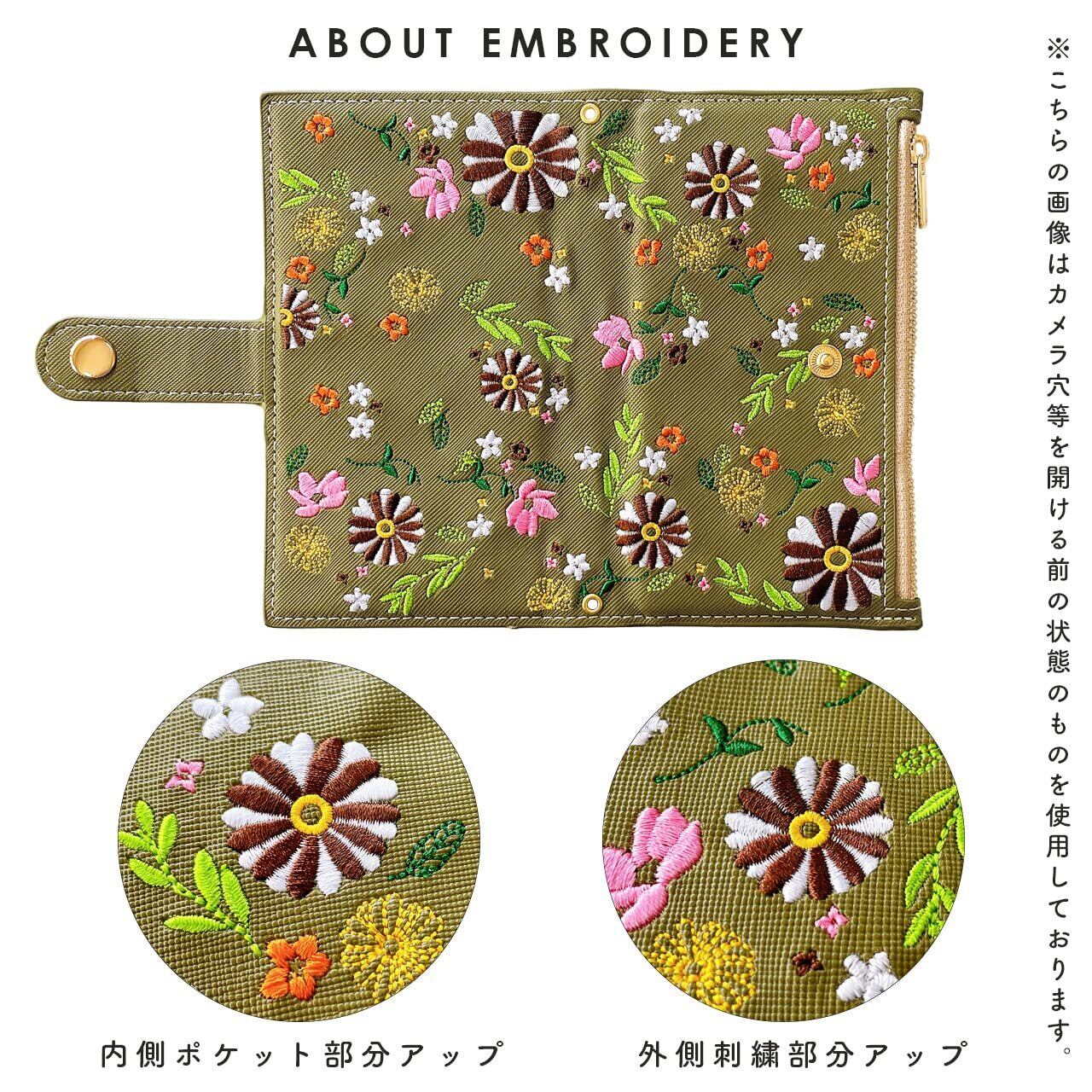 Galaxy S20 5G SC-51A SCG01 用 ケース カバー 手帳型 手帳型ケース SC51A SC-51Aケース SC-51Aカバー SCG01ケース SCG01カバー SC51Aケース SC51Aカバー 手帳ケース スマホケース おしゃれ花刺繡 オリーブ