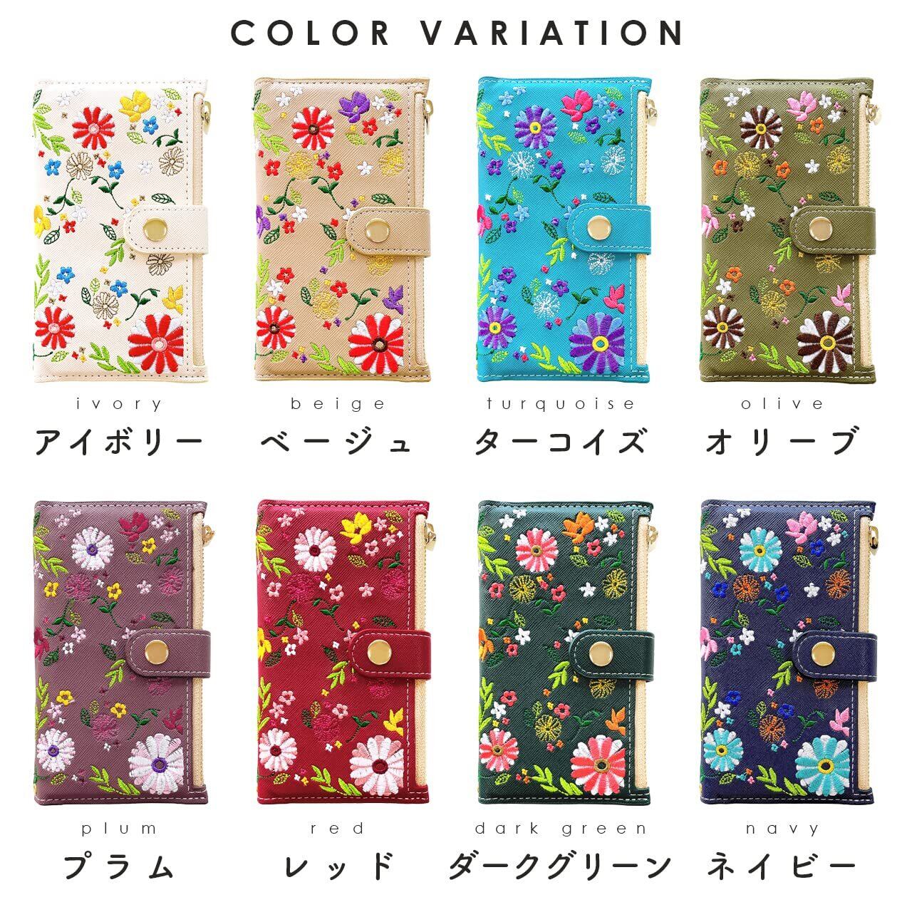 Galaxy S20 5G SC-51A docomo SCG01 au サムスン 専用 手帳型ケース。小銭や免許証等の収納に便利なファスナー付きの手帳型ケースです。上品なサフィアーノ生地に、色鮮やかな花柄の刺繍を施しています。