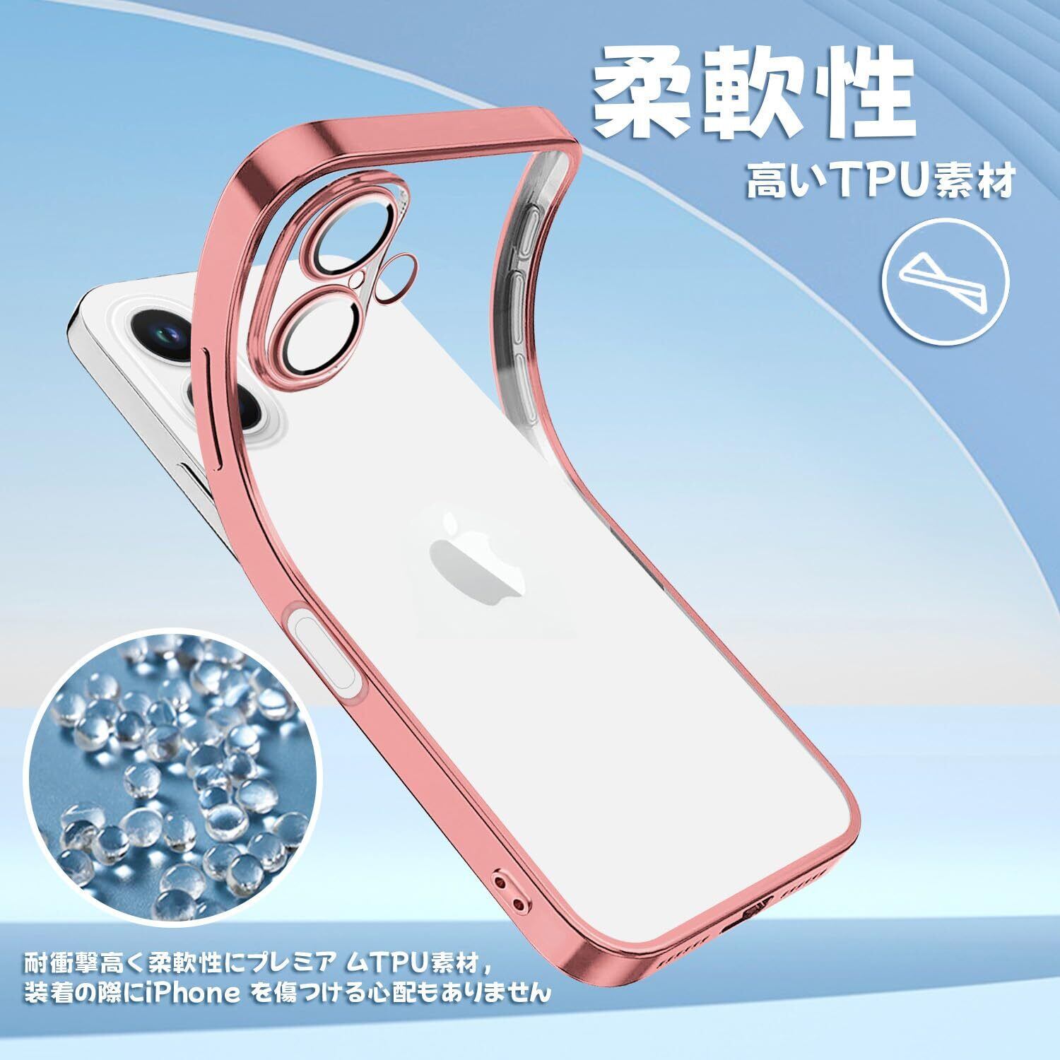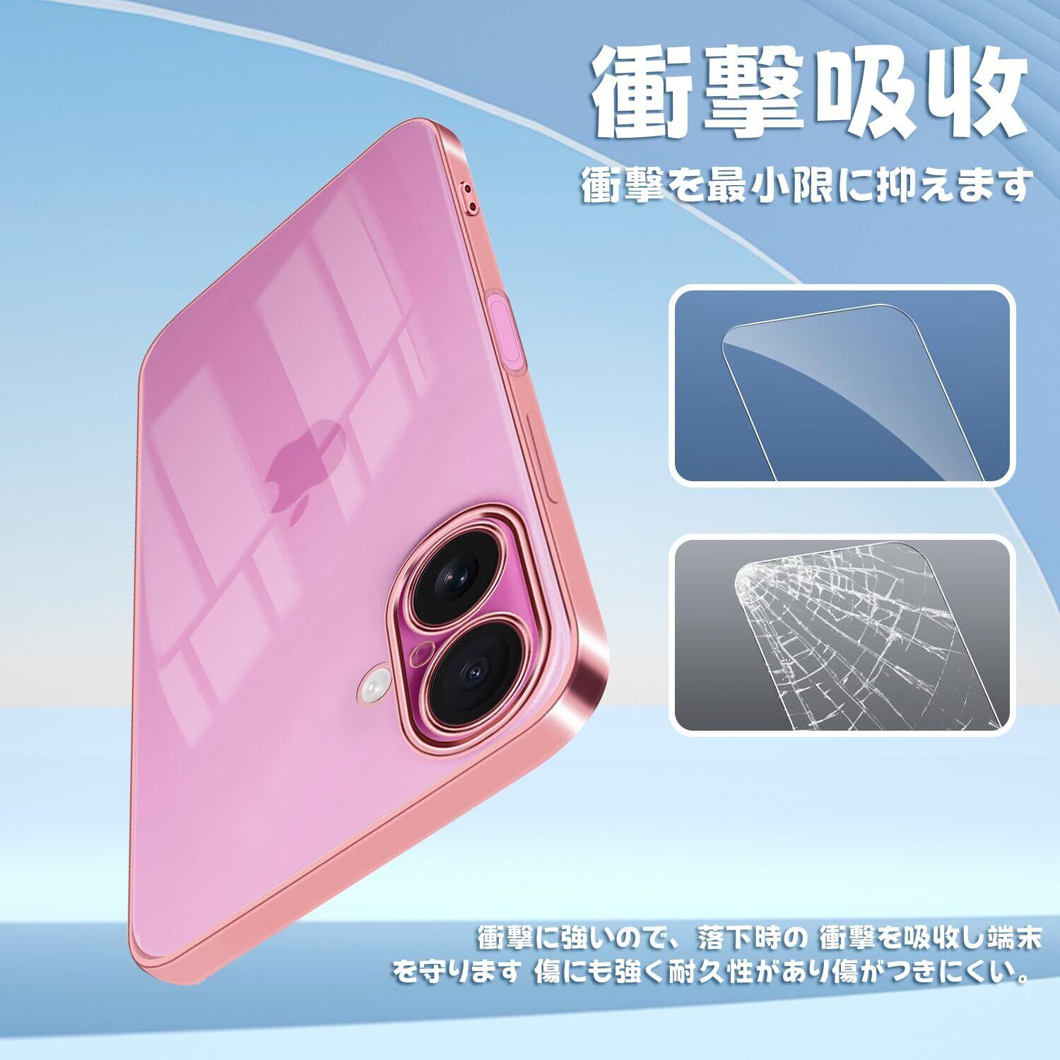 iPhone 16 Plus 用 ケース クリア 【カメラレンズ保護付き/フィルム付き】 アイフォン16plus 用 カバー 16プラス スマホケース 透明 TPU 薄型 耐衝撃 スリム メッキ加工 黄変防止 ストラップホール付き ワイヤレス充電対応 iphone16plus 用 クリアケース ローズゴールド