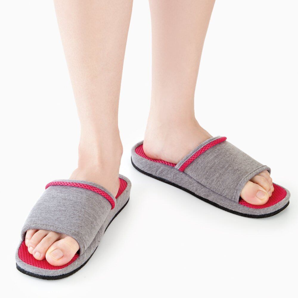 青竹踏みのように大きく隆起したインソールが特徴の健康スリッパ。足裏のコリをほぐし、血行を促進。