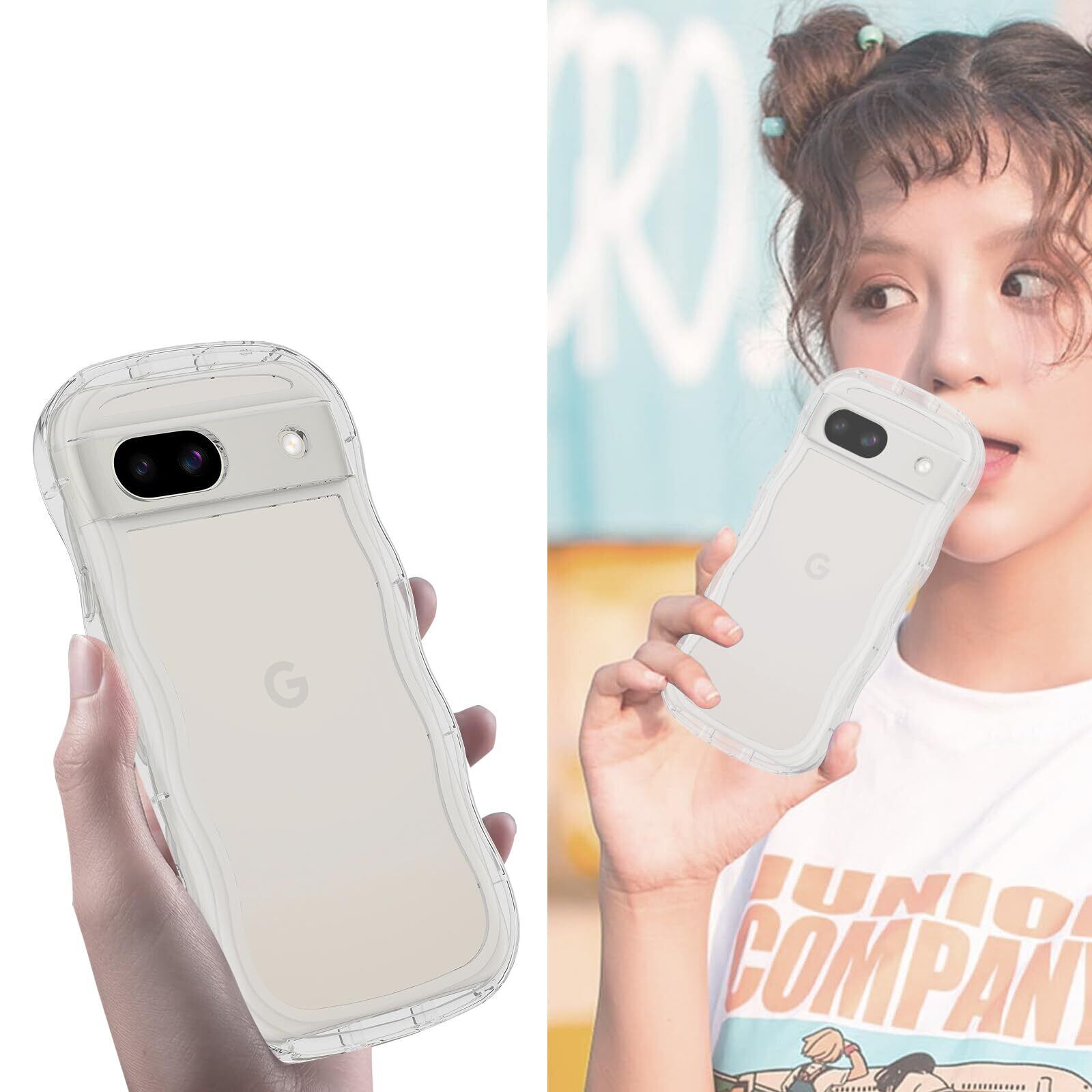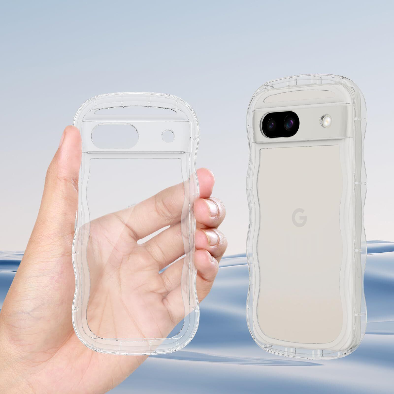 HILEGENER Google Pixel 8A かわいい ケース うねうね 耐衝撃 グーグル ピクセル8A 6.1インチ用滑り止め スマホケースウェーブ デザイン 手にフィット スマホカバー 韓国 可愛い クリア ソフトTPUカバー 波状エッジ ソフトシェル ケース 人気 落下防止 全面保護 ワイヤレス充電対応 ストラップホール付き(Pixel 8A-純透明)