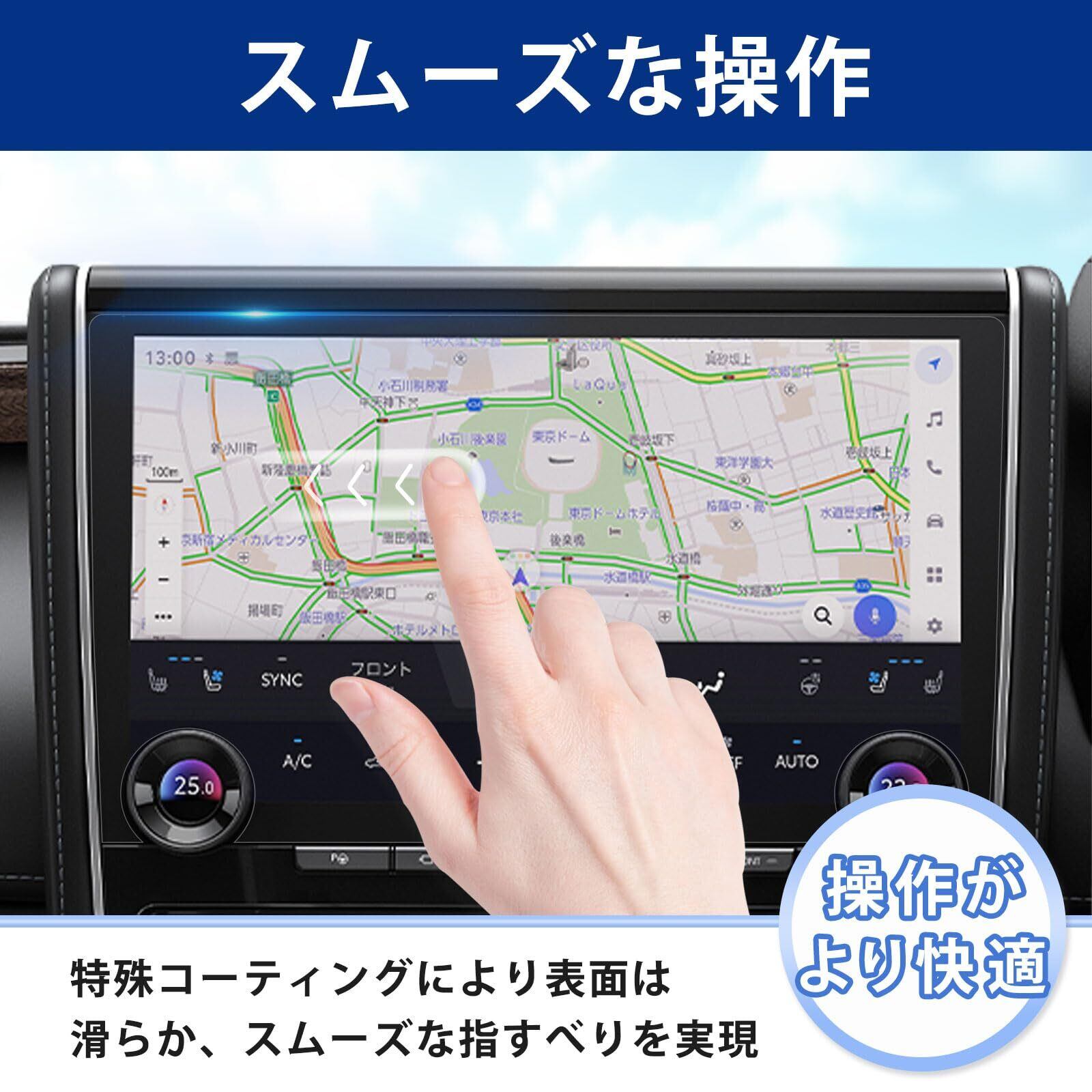 ◎指紋防止:指紋や汚れを防ぎ、アルファード(ヴェルファイア)のナビ画面をしっかり保護します。ホコリが付着しにくい帯電防止仕様です。