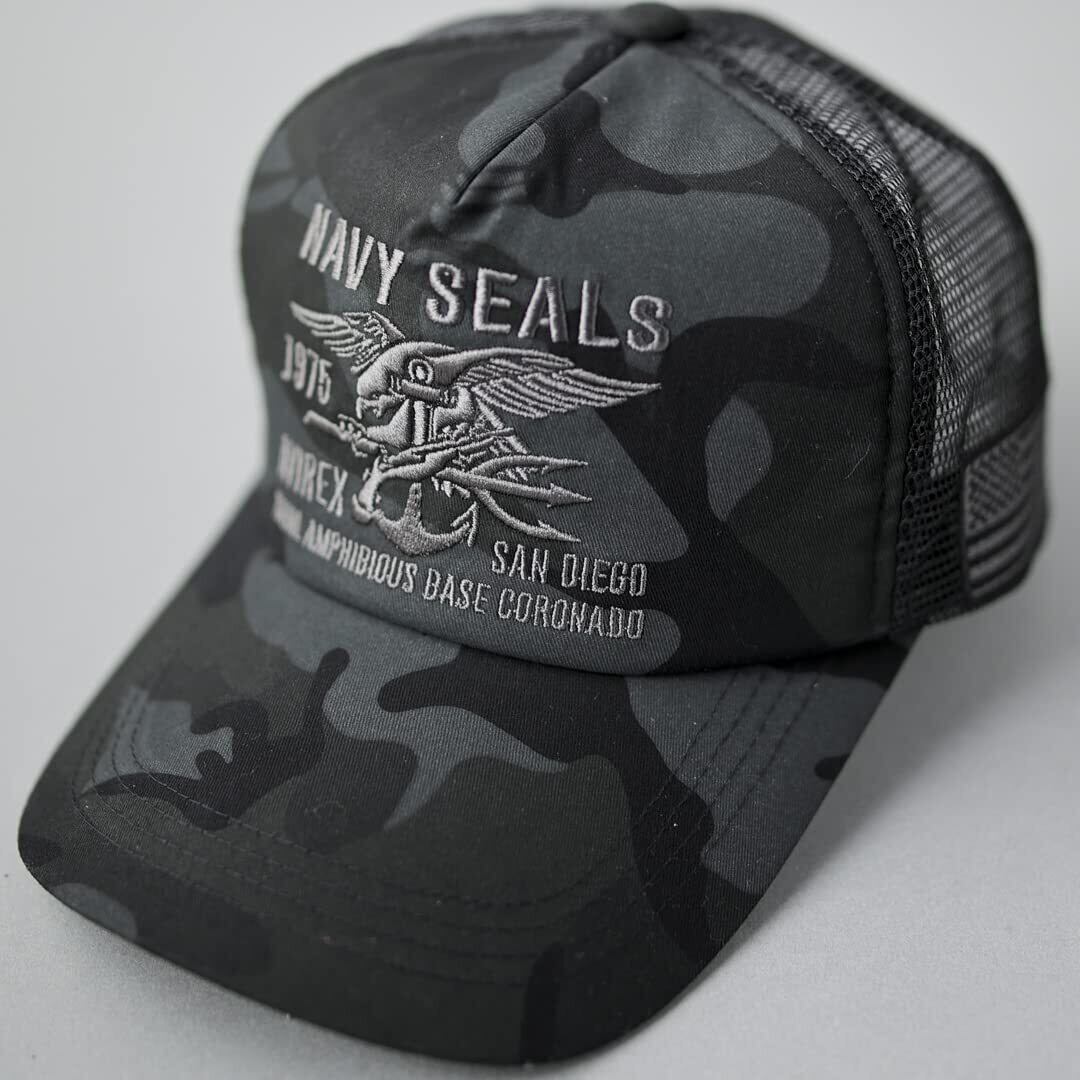 [アヴィレックス] 2サイズ展開 スタンダード ミリタリー メッシュキャップ XL LL 大きいサイズ 帽子 キャップ メンズ ビッグサイズ 夏 (XL NAVYSEALSブラックカモ)