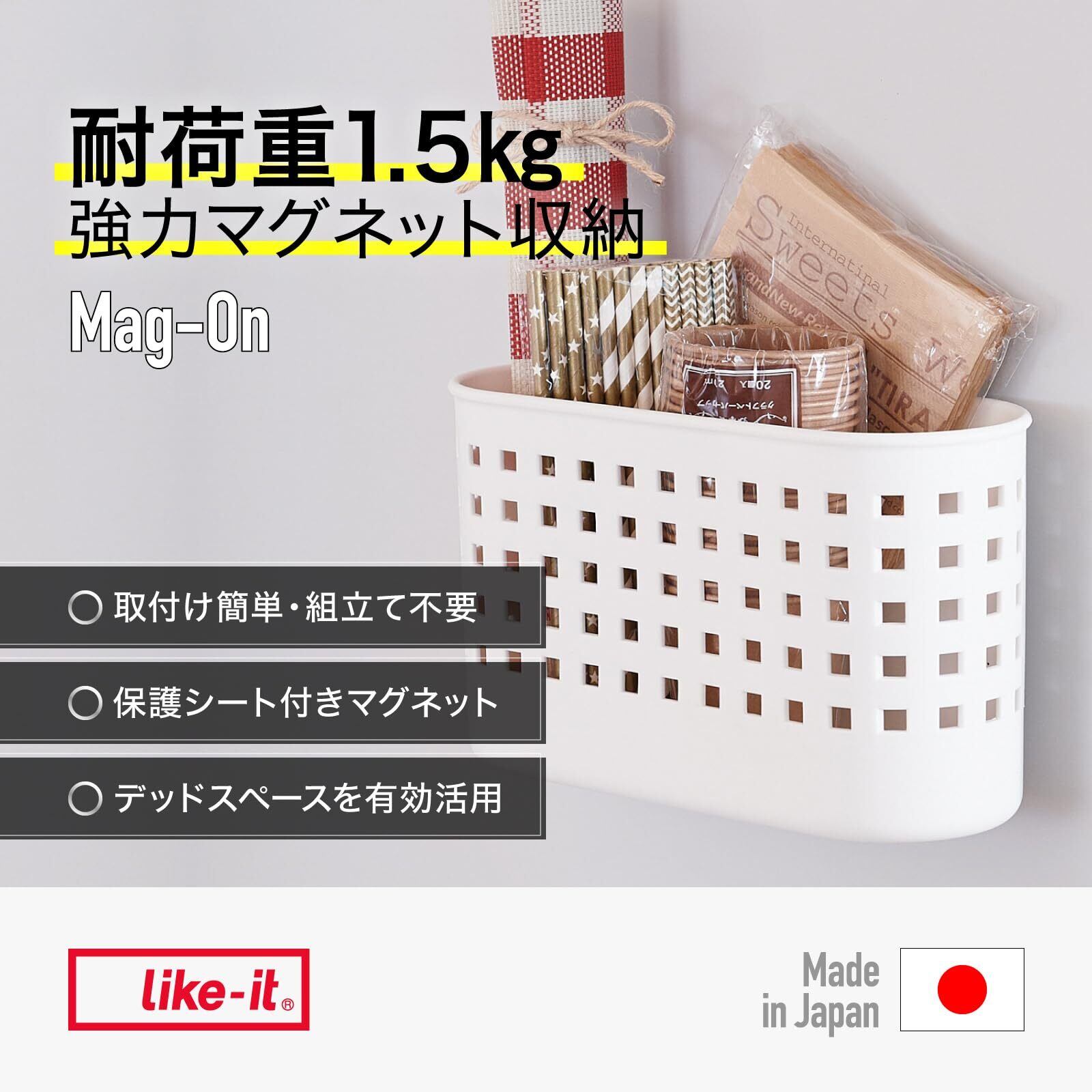 ライクイット ( like-it ) ランドリー 小物収納 マグネット収納 強力マグネット 洗濯機 バスケットミニ ホワイト Mag-On 8030