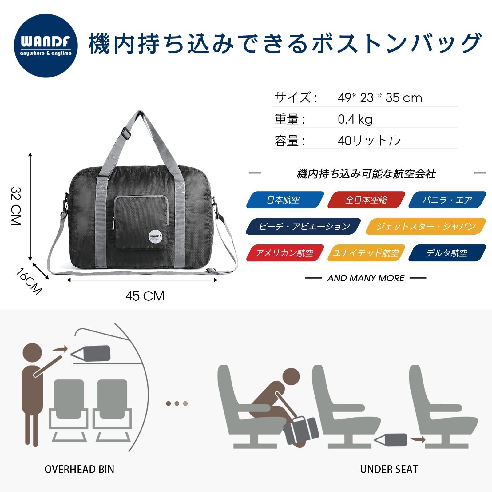 WANDF 折りたたみバッグ ボストンバッグ スポーツバッグ 40L 60L 80L 100L 146L 大容量 スーツケース固定 斜め掛け