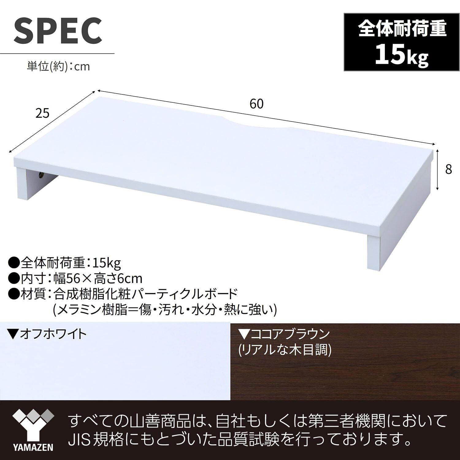 山善(YAMAZEN) モニター台 (机上台) 木製 傷・汚れ・水分・熱に強い コンパクト パソコン台 幅60×奥行25×高さ8cm 組立かんたん オフホワイト MDTS-6025(OW) テレワーク
