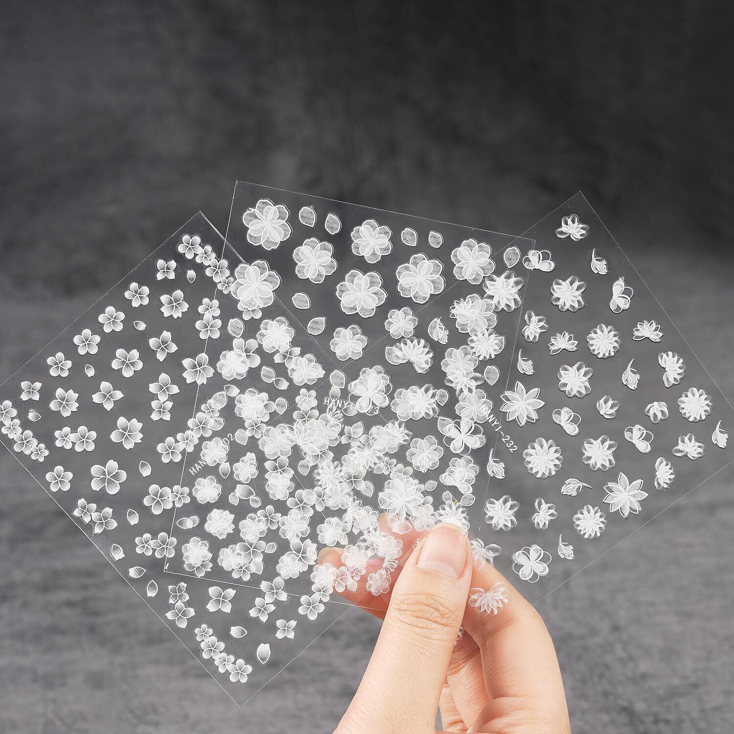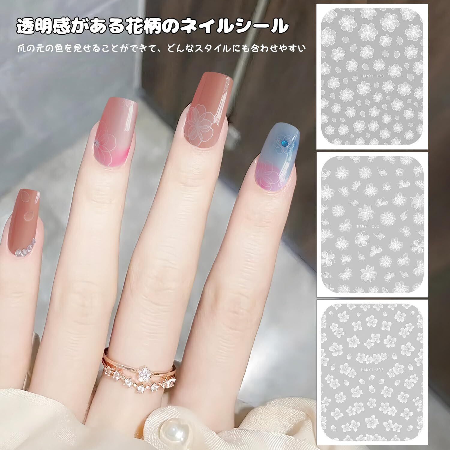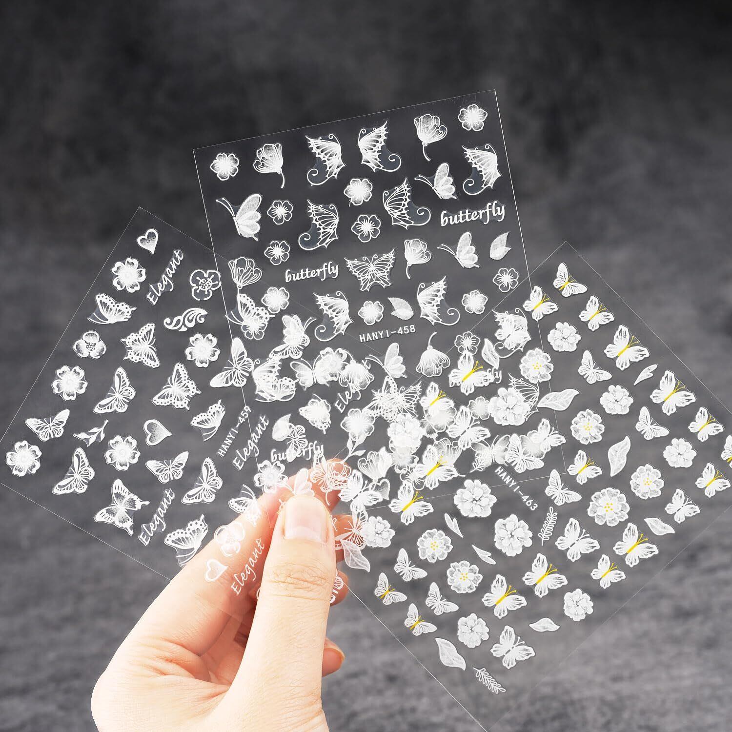【汎用性が高い】ホワイトの透明感のある蝶、花の柄のネイルシールは、爪の元の色を見せることができて、どんなスタイルにも合わせやすいです