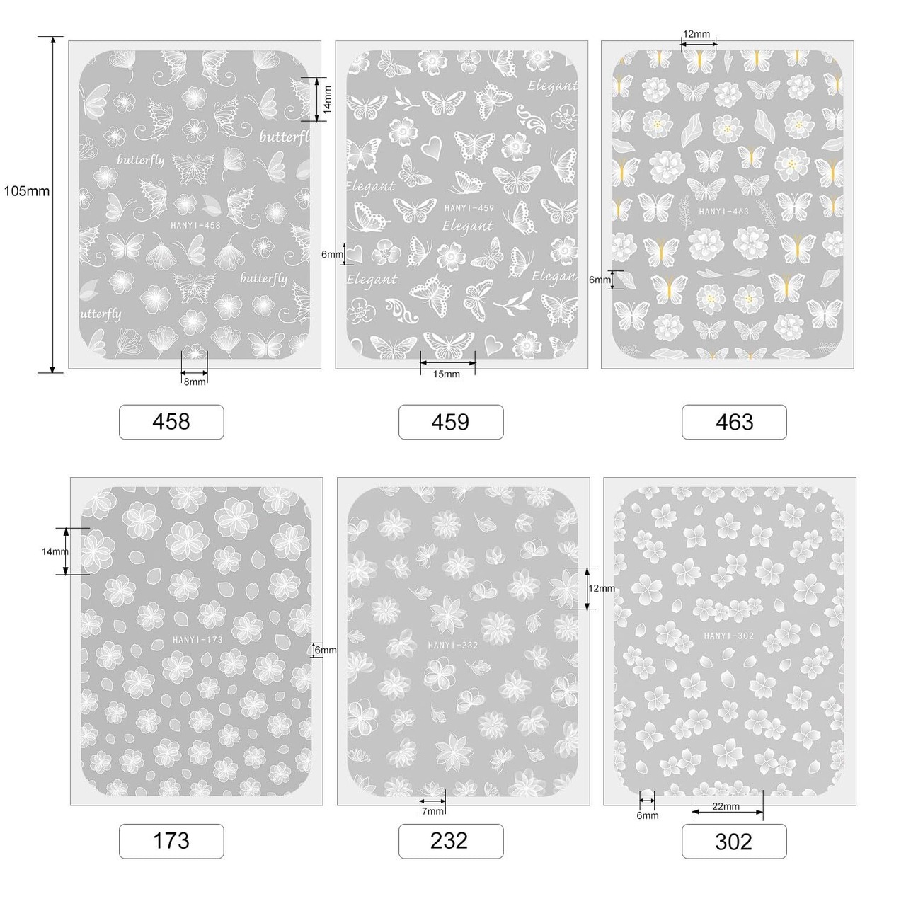 Chisafly ネイルシール 花 白 蝶 桜 ネイルステッカー 花柄 蝶々 花びら フラワー ホワイト レース 6枚セット