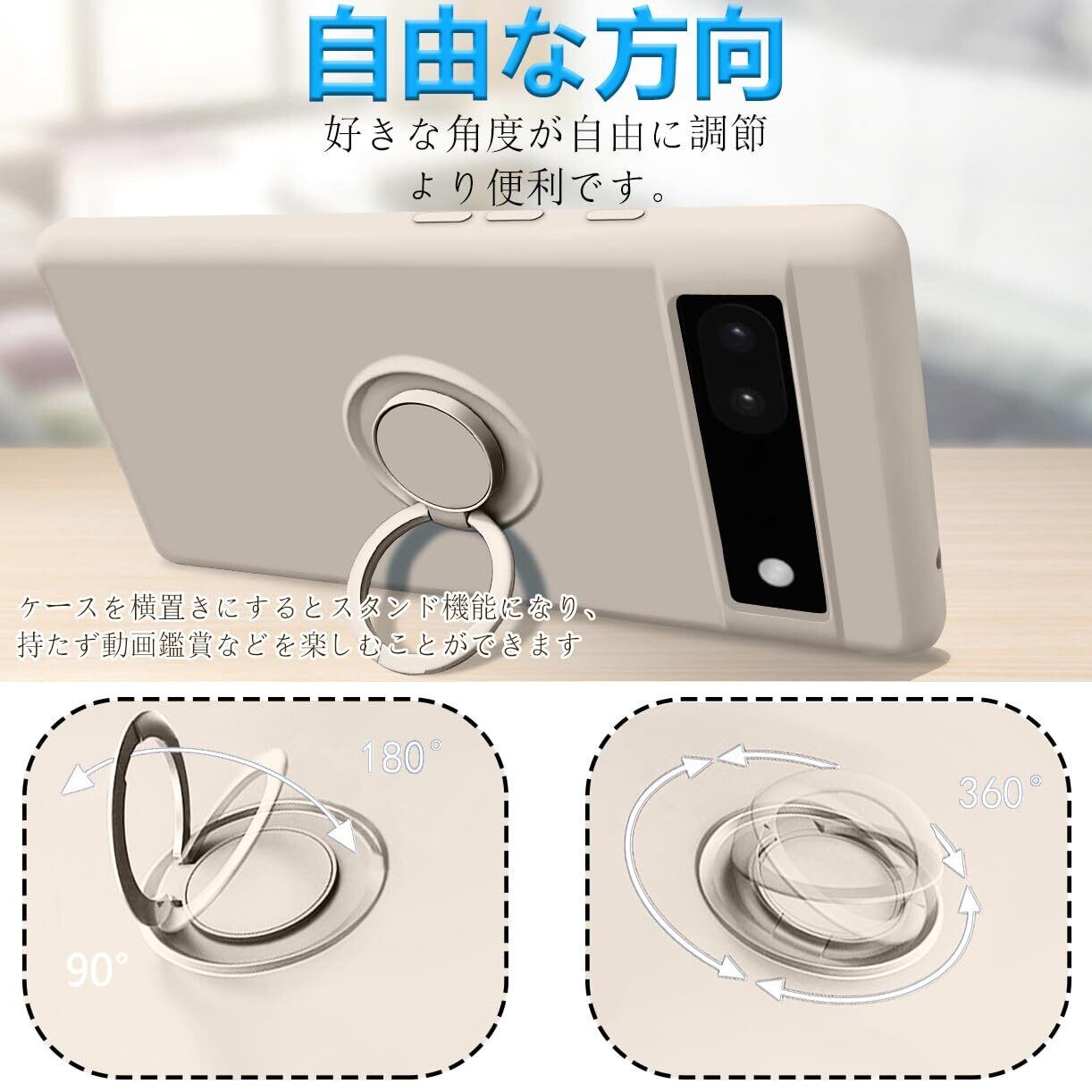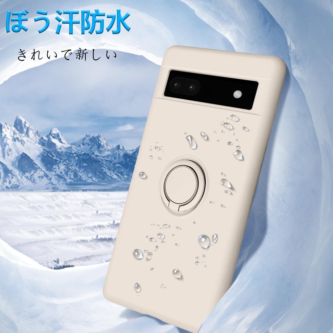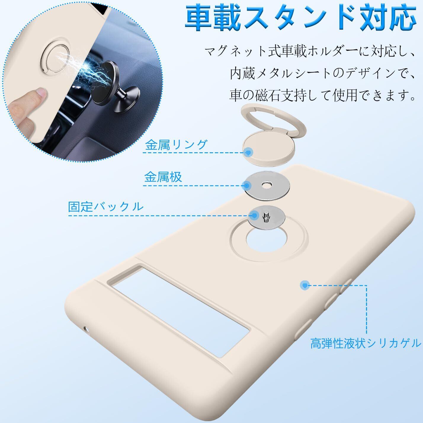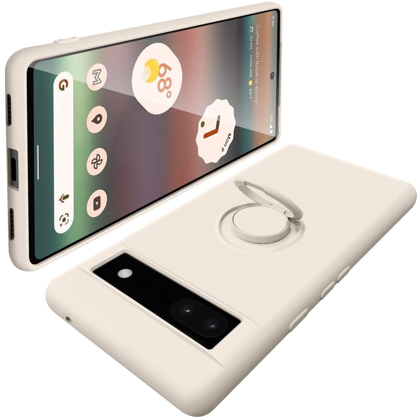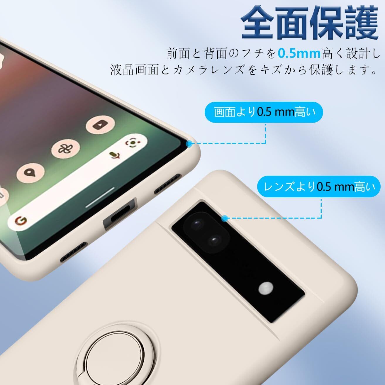 Google Pixel 6a ケース 耐衝撃 スタンド機能付き リング付 ピクセル6a リング スマホケース マット感 液体シリコン ソフト 360回転車載ホルダー (ホワイト)