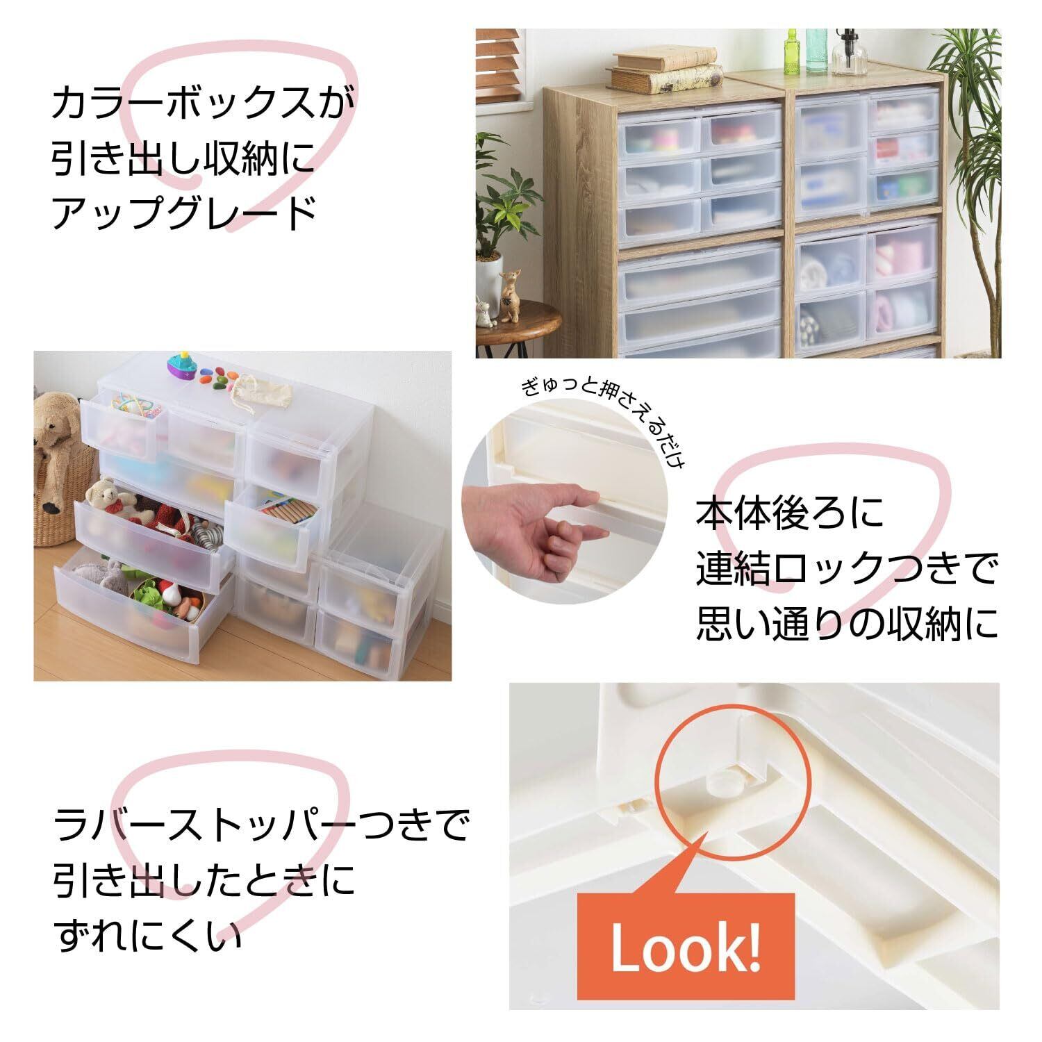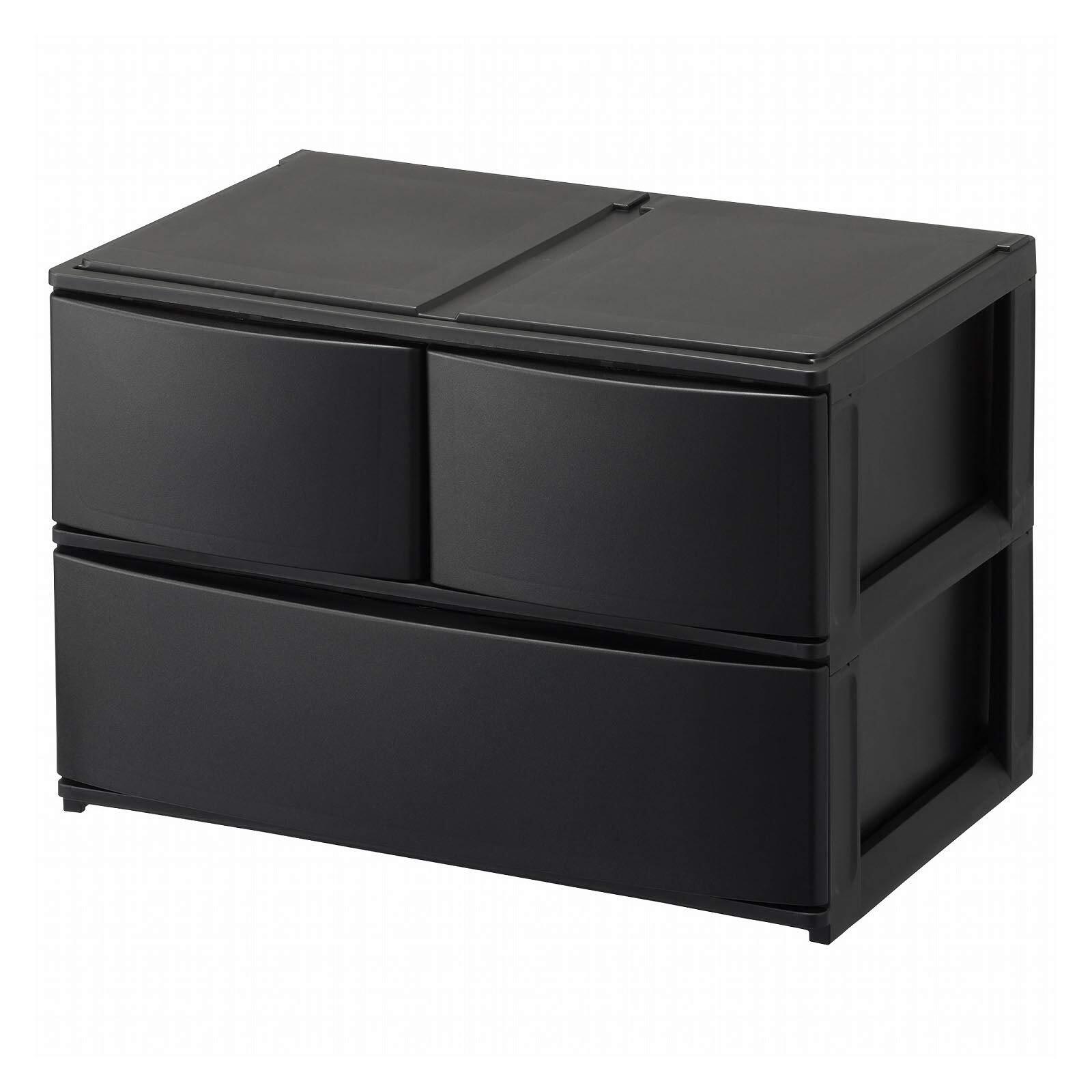 サンカ ポスデコ カラーボックスにピッタリフィット 引き出し収納ボックス ワイド 深2段(引出し3個) ブラック ずれを防ぐラバーストッパー 重ねて使える スタッキングチェスト ロック機構 日本製 カラーボックス 収納ケース 小物 衣装 ボックス (幅39x奥行26.5x高さ26.5cm) NpdW-BBK