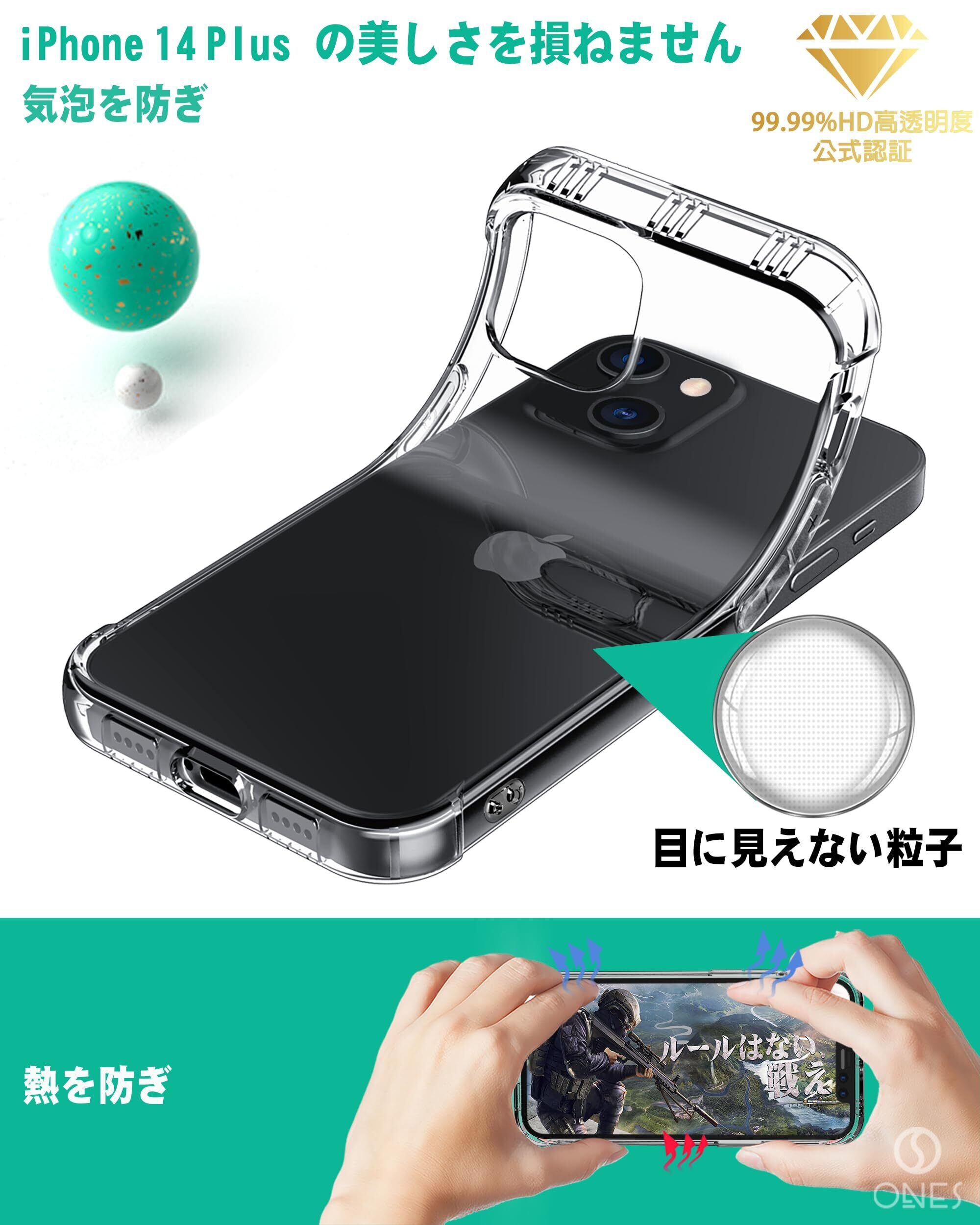 ONES iPhone14Plus ケース HD全透明 米軍MIL規格 超耐衝撃 『 360°エアバッグ、半密閉音室 』〔 画面 · レンズ保護、滑り止め、ストラップホール 〕薄型 Qi充電 超軽量 衝撃吸収 HQ·TPU クリスタル クリア 音楽 カバー