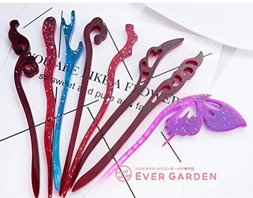 【Ever garden】 簪 蝶 かんざし 8本セット レジン シリコンモールド ネックレス アクセサリー パーツ 作成 UVレジン エポキシ樹脂 樹脂粘土 型 抜き型 キット 道具
