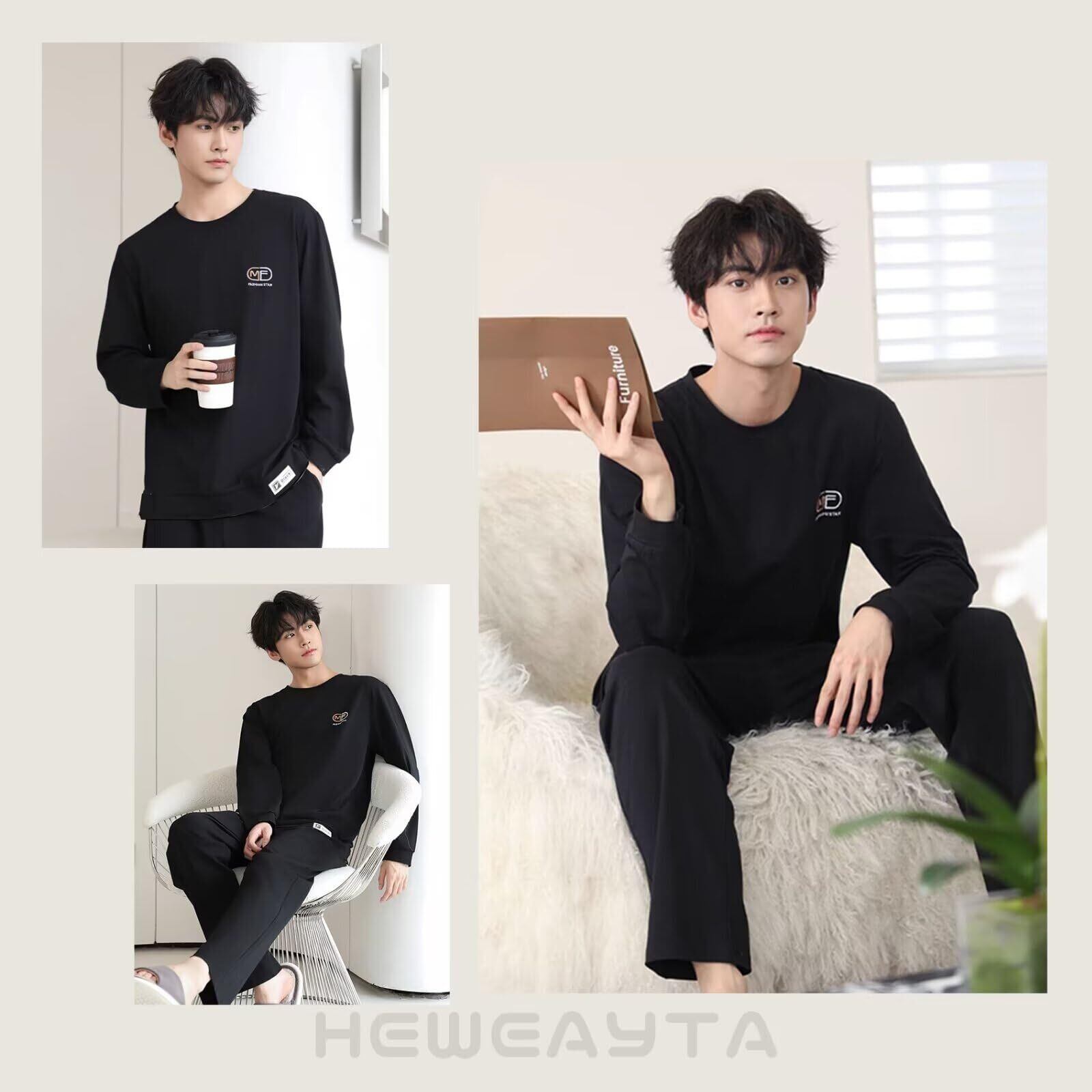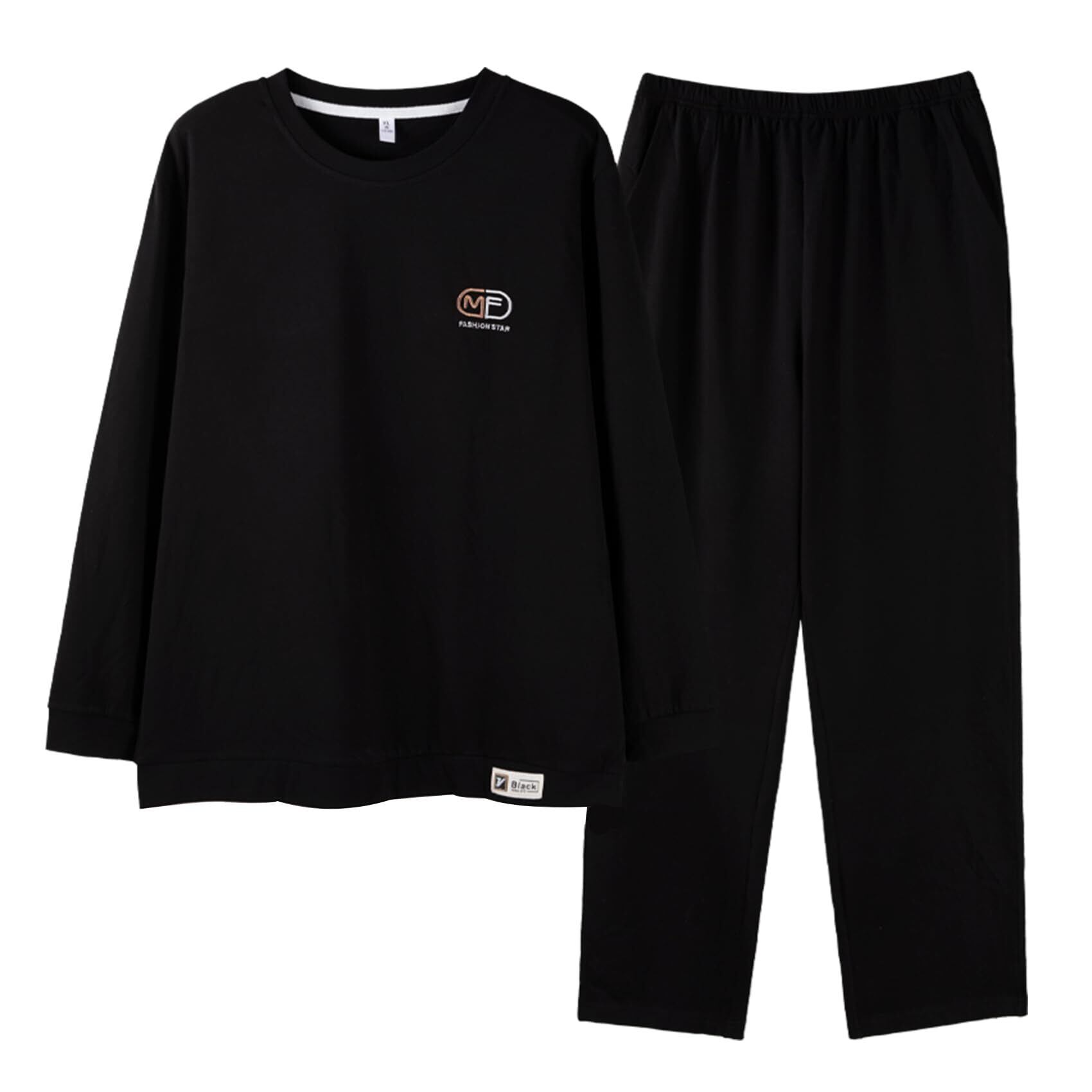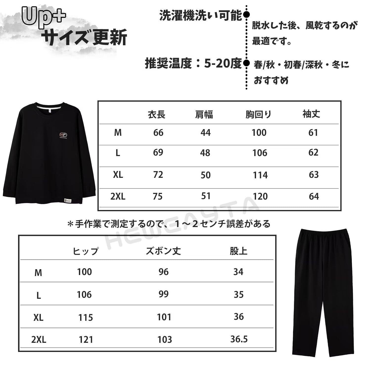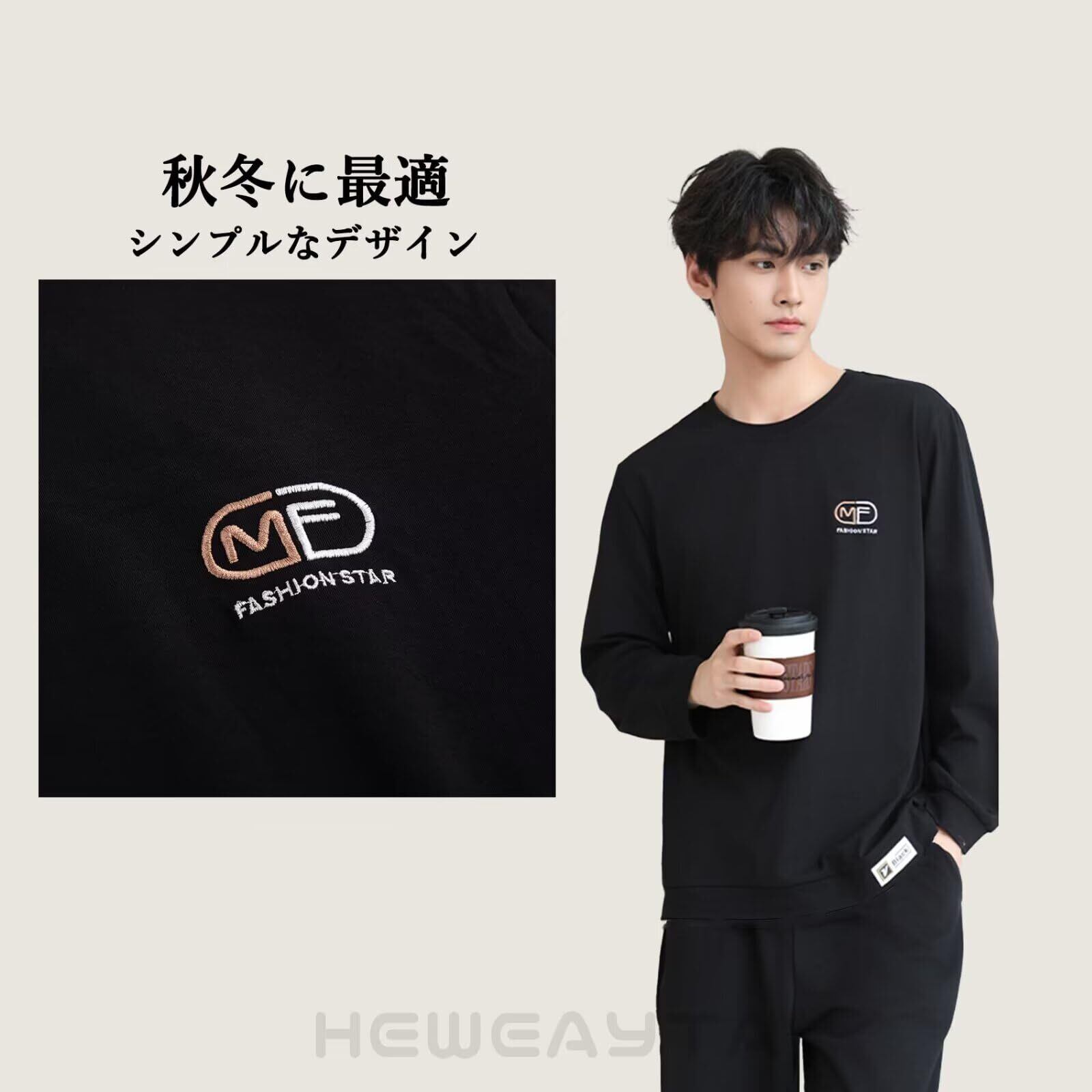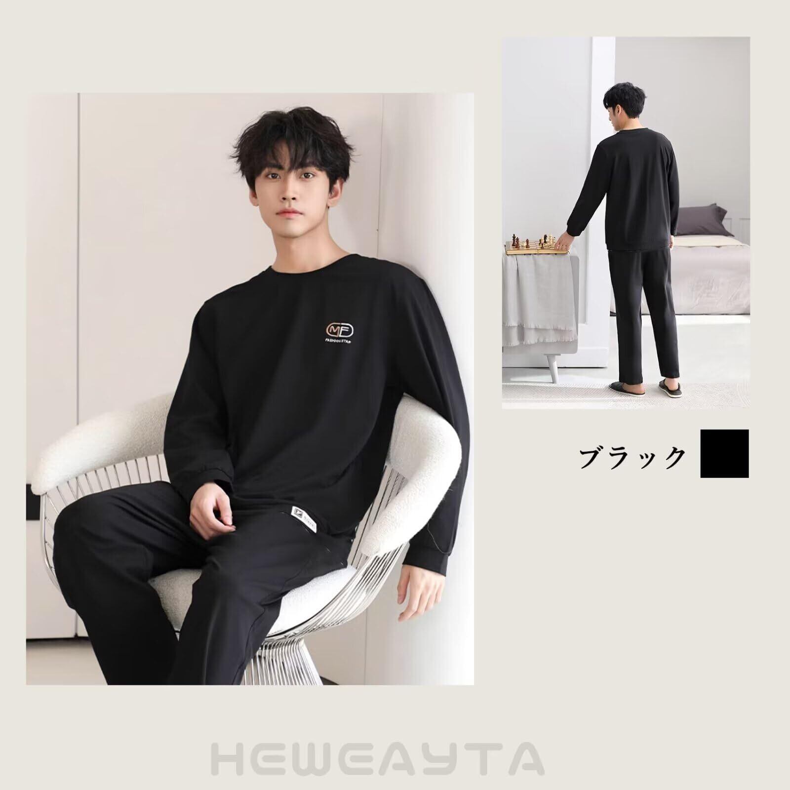 [HEWEAYTA] パジャマ メンズ 長袖 二重起毛 - ルームウェア 上下セット 大きいサイズ - 40-90KG 丸首 部屋着 春秋冬用 ゆったり 通気 肌に優しい 吸湿 保温(07ブラック L)
