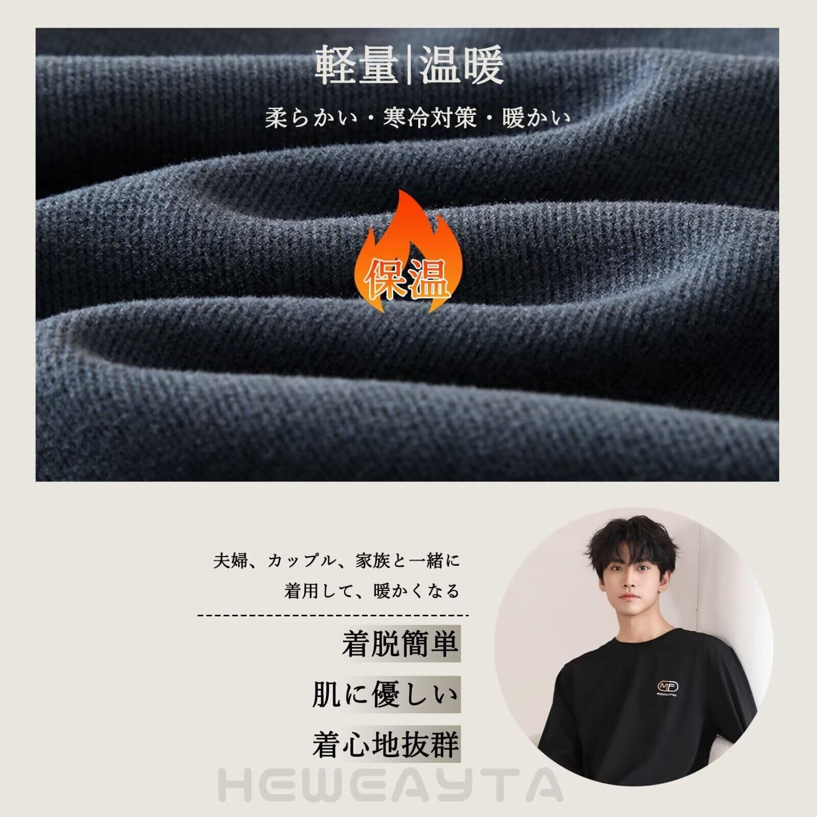 [発熱素材]素材二重起毛:表側も裏側も細かな起毛素材、寒冷対策の素材は肌を触れると、暖かさを感じます。特殊な加工を施して吸湿・発熱機能を持たせた素材を使用して、体から発せられる水分や汗を利用して熱に変える発熱機能付きの効果が期待できます。汗を吸収し、暖かい空気に変えて暑すぎず、ちょうど良い温かさを持ち続けています。軽量、薄生地でも暖かいです。