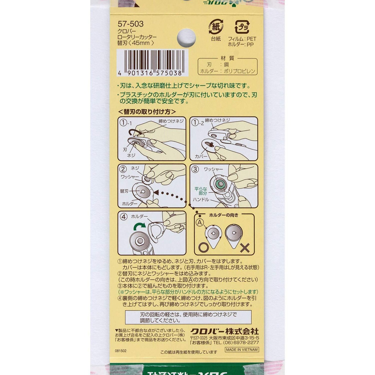 全長(mm):45●材質:刃:鋼、ホルダー:ポリプロピレン●製造国:ベトナム