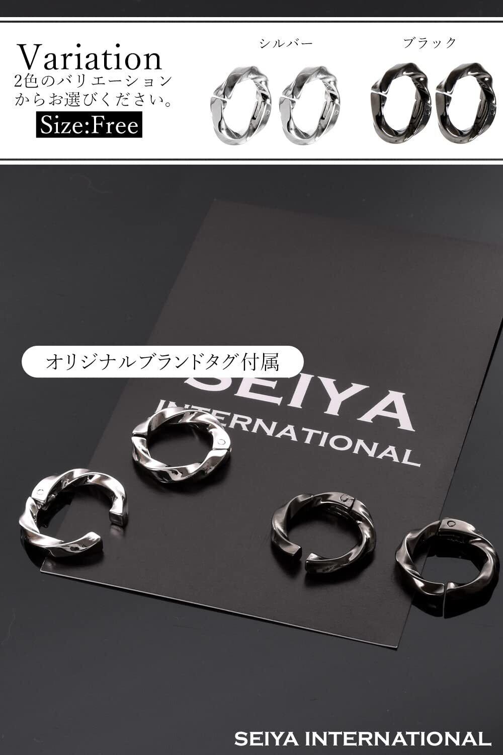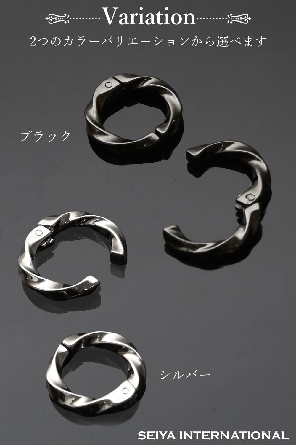 [SEIYA INTERNATIONAL] イヤリング メンズ フェイクピアス イヤーカフ ツイストフープ 両耳 2個セット (ブラック)