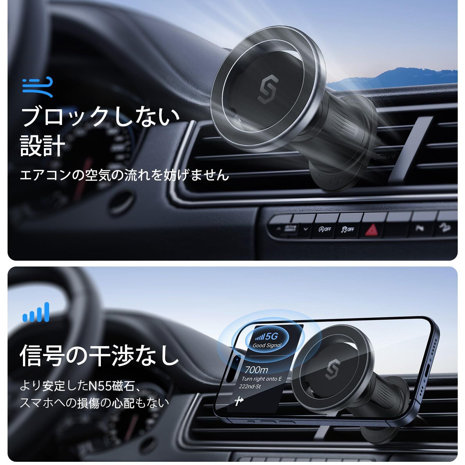 スマホホルダー 車 MagSafe対応 SYNCWIRE【強化金属フック】MagSafe車載 エアコン吹き出し口用 マグネット 車載スマホホルダー 車スマホスタンド 落下防止 360度回転 iPhone 15 14 13 12 SE Samsung Xperia など全種類スマホに対応 (ブラック)