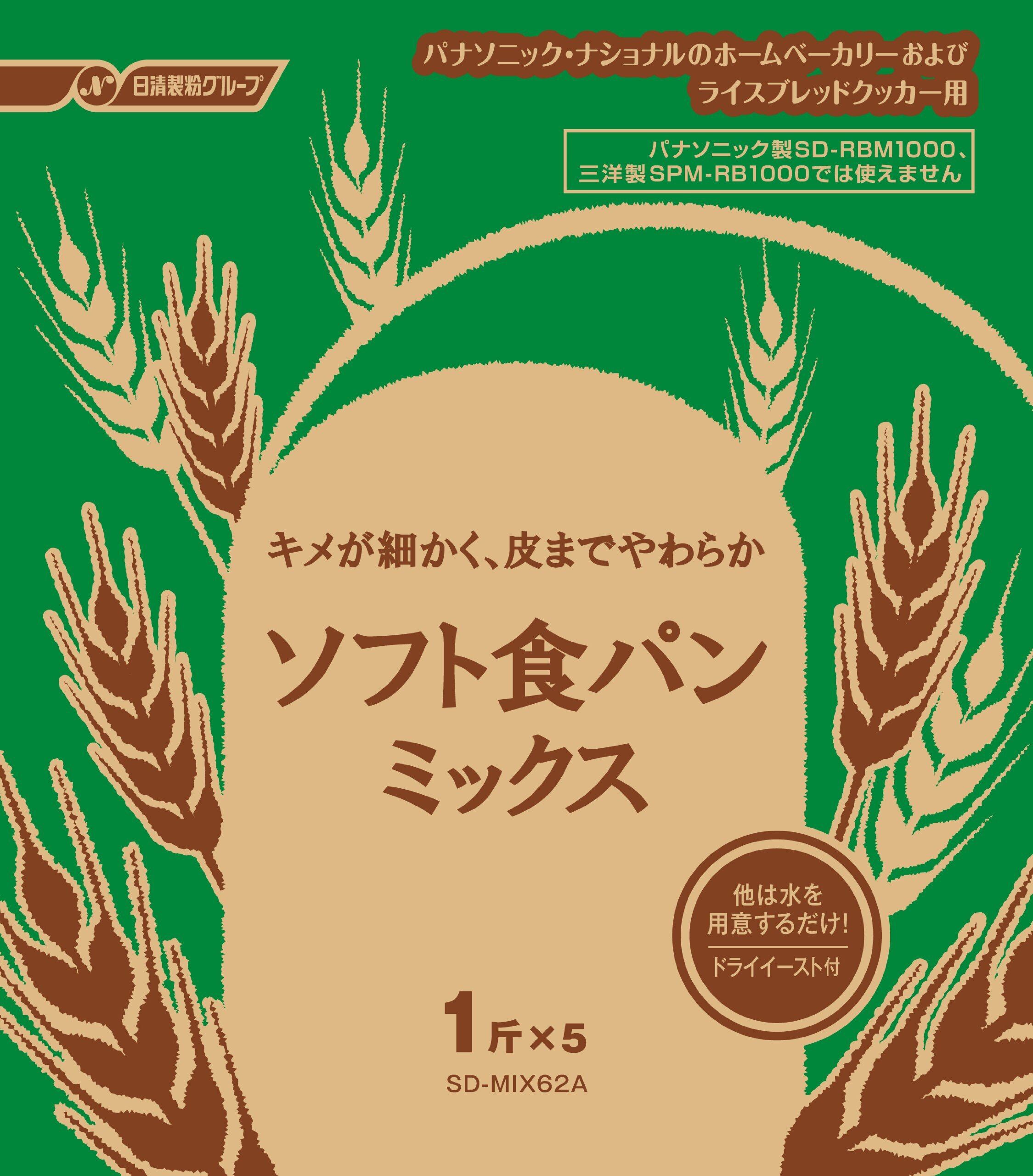 パナソニック ホームベーカリー用 粉末 ソフト食パンミックス ドライイースト付 1斤×5袋 SD-MIX62A