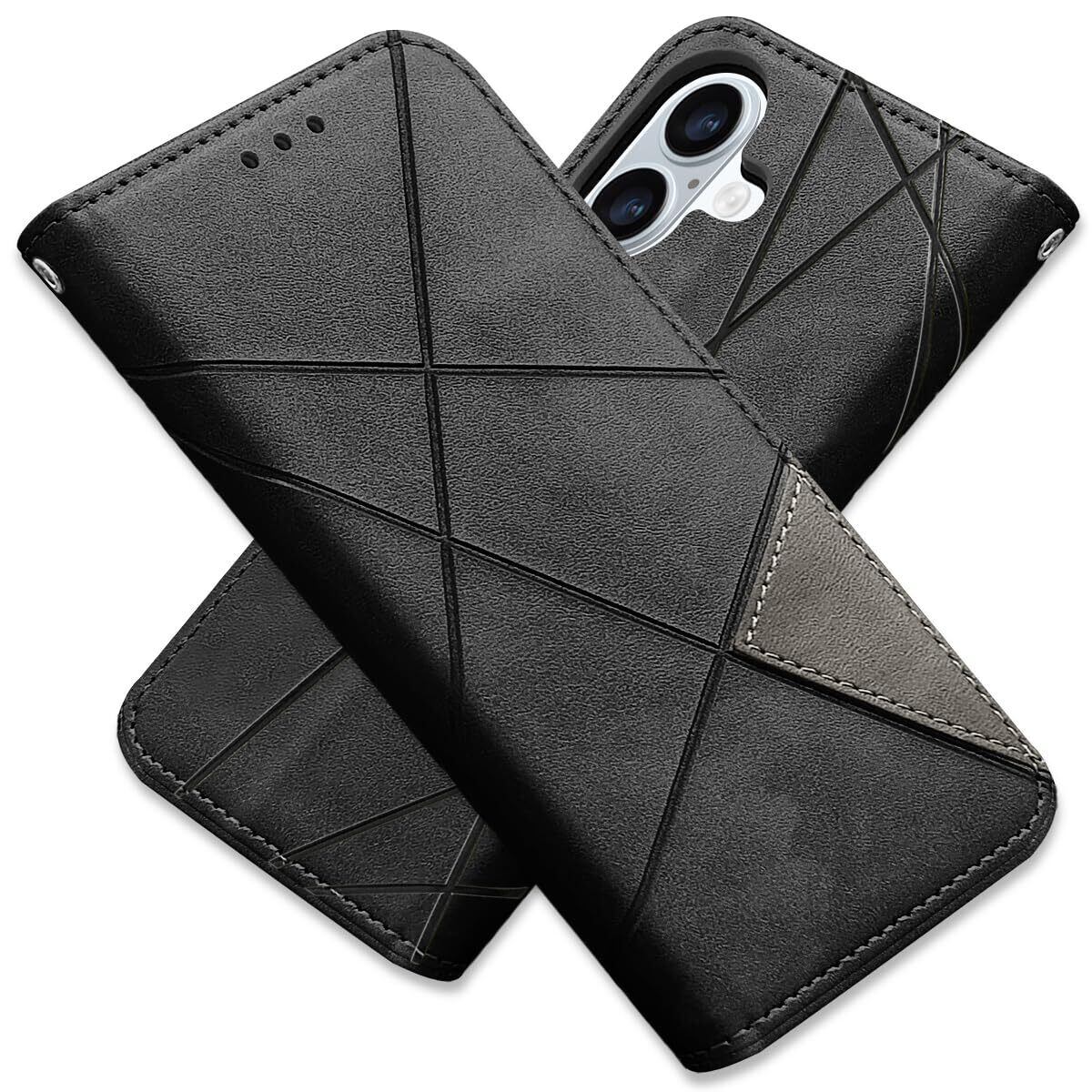 ZHUAZHULE iPhone16 ケース 手帳型 アイフォン16 財布型 レザー スマホケース カード収納 マグネット式 スタンド機能 高級PUレザー 携帯カバー 耐衝撃 レンズ保護 擦り傷防止 ストラップホール付き おしゃれ 人気 (ブラック)