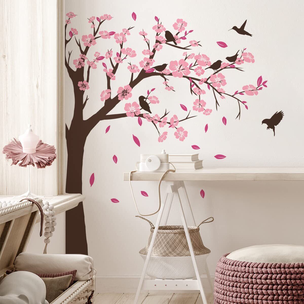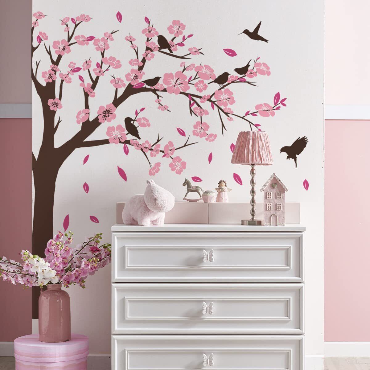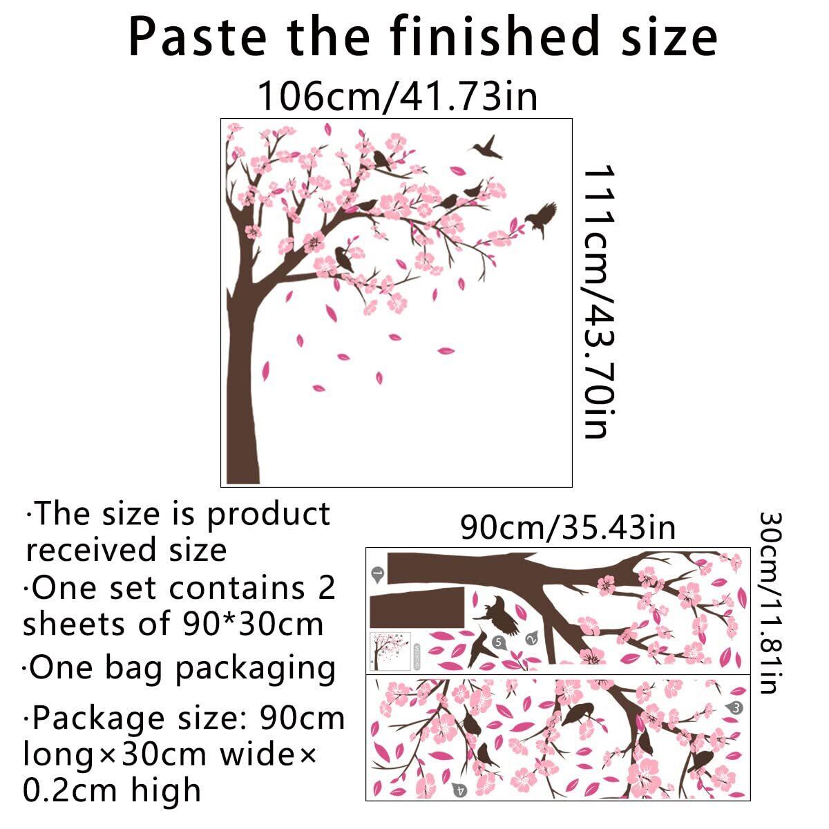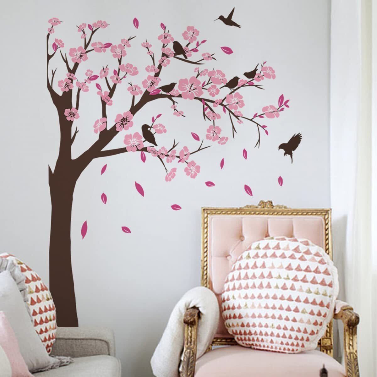 Condessacity ウォールステッカー 木 おしゃれ ウォールシール サクラ ピンクの桃の花 小鳥 ウォールペーパー 防水 ウォールすてっかー 壁 シール はがせる リビングルーム 賃貸 ベッドルーム 壁に貼る 壁飾り 子供 部屋 toy room wall sticker decor