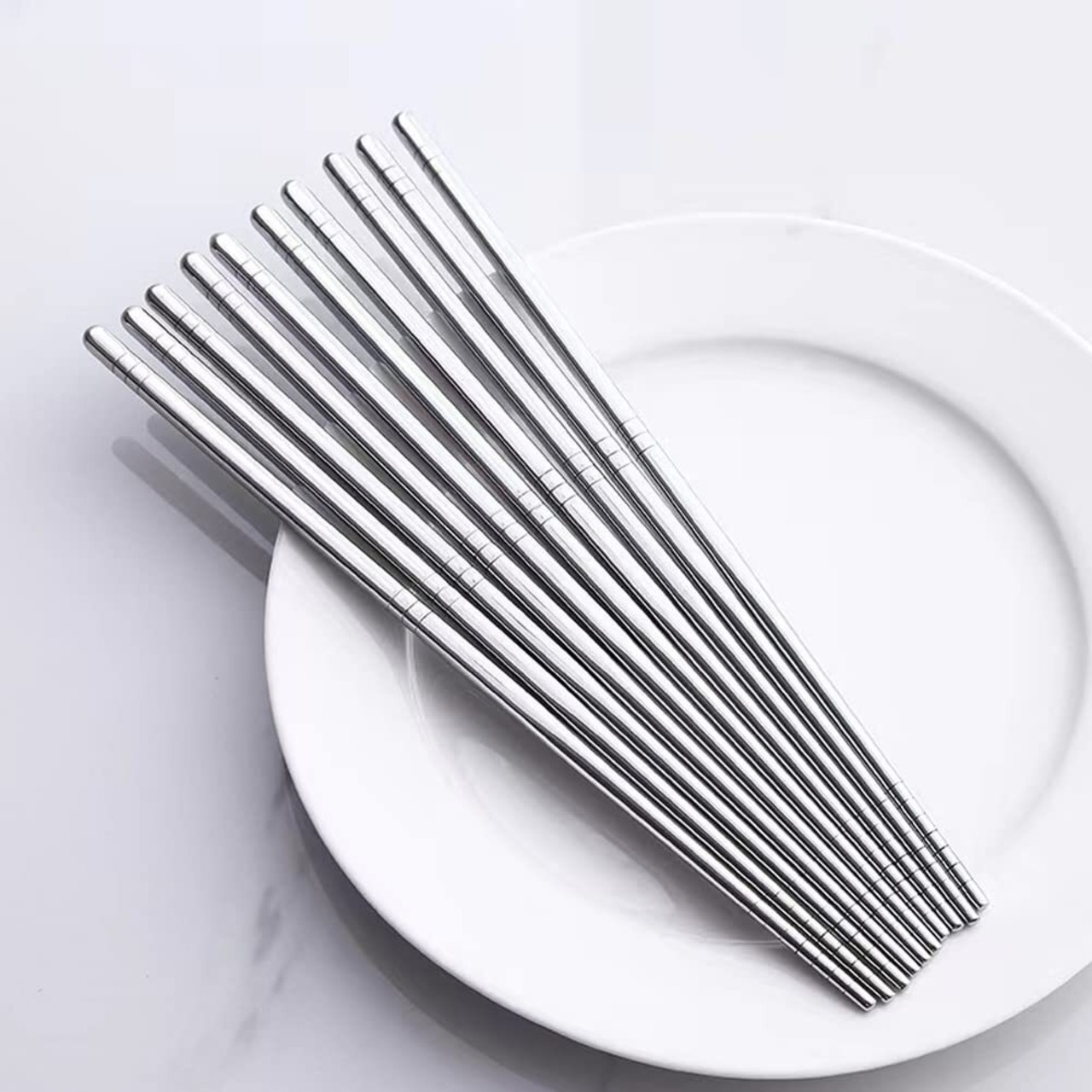 韓国風の箸セット:高品質18-8ステンレス製で、安全、エコ、衛生、長持ちです。木、プラスチックの箸と違い、カビが生えない、変形しない。食洗機対応、手で洗いもしやすく、水はけも良く、洗って保存が清潔です。