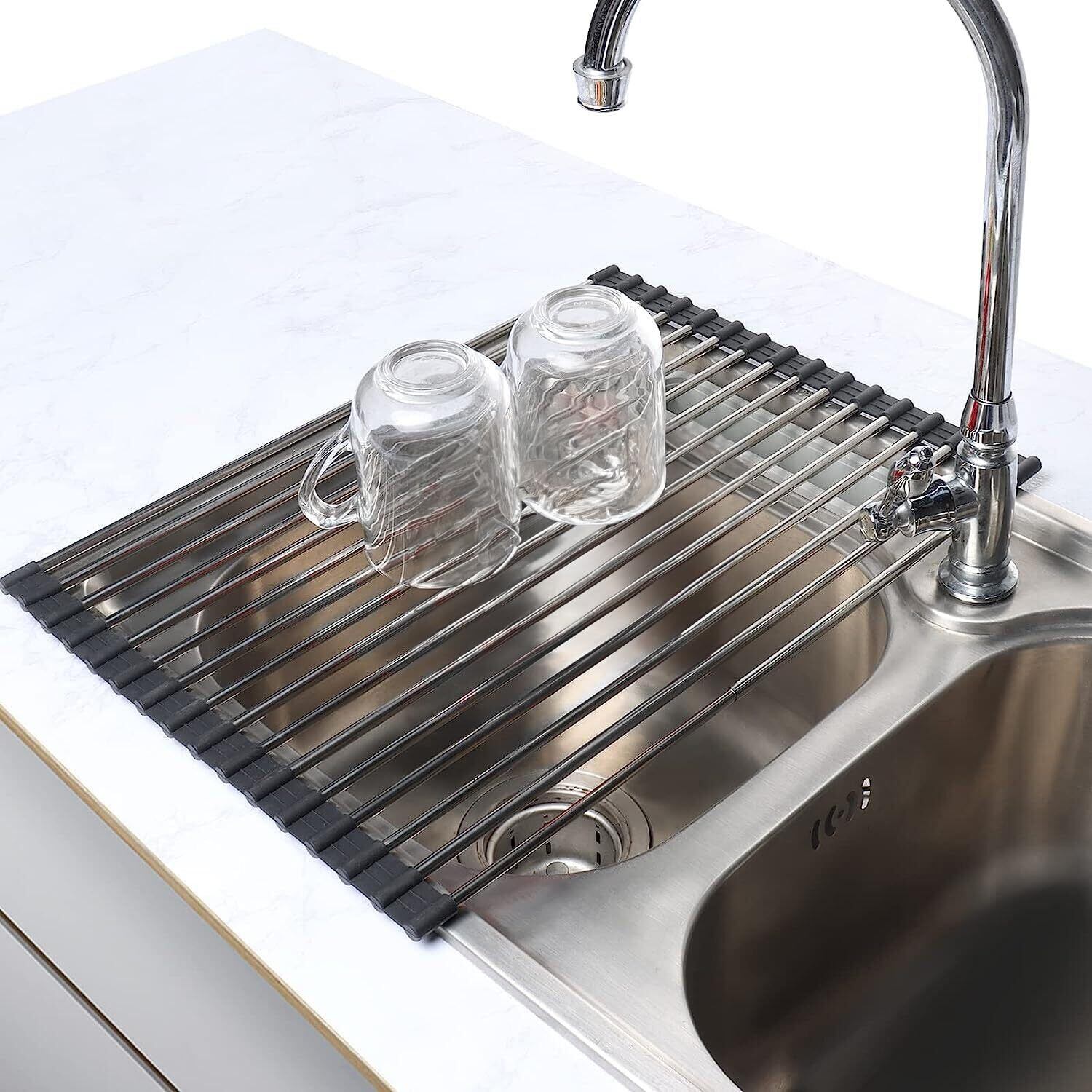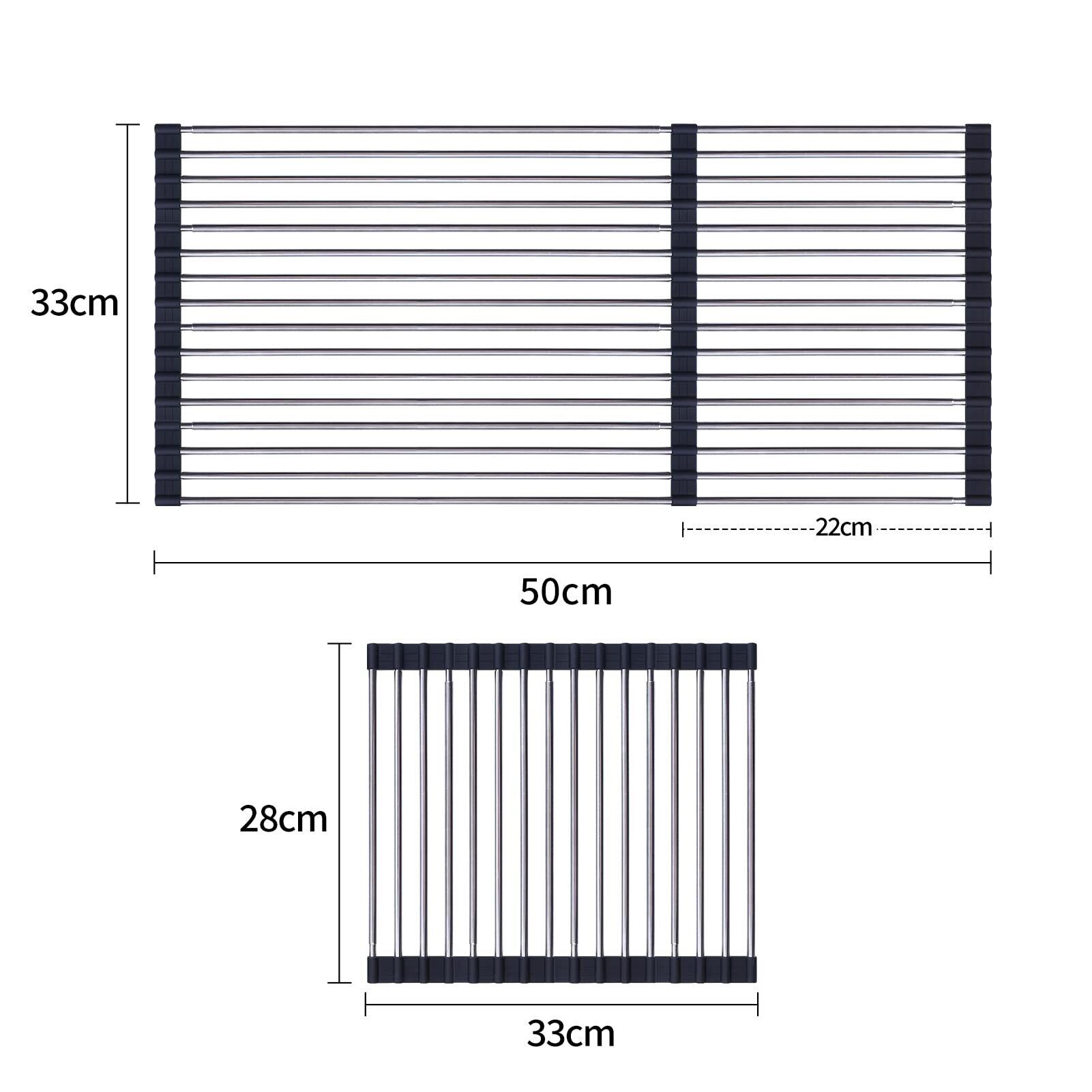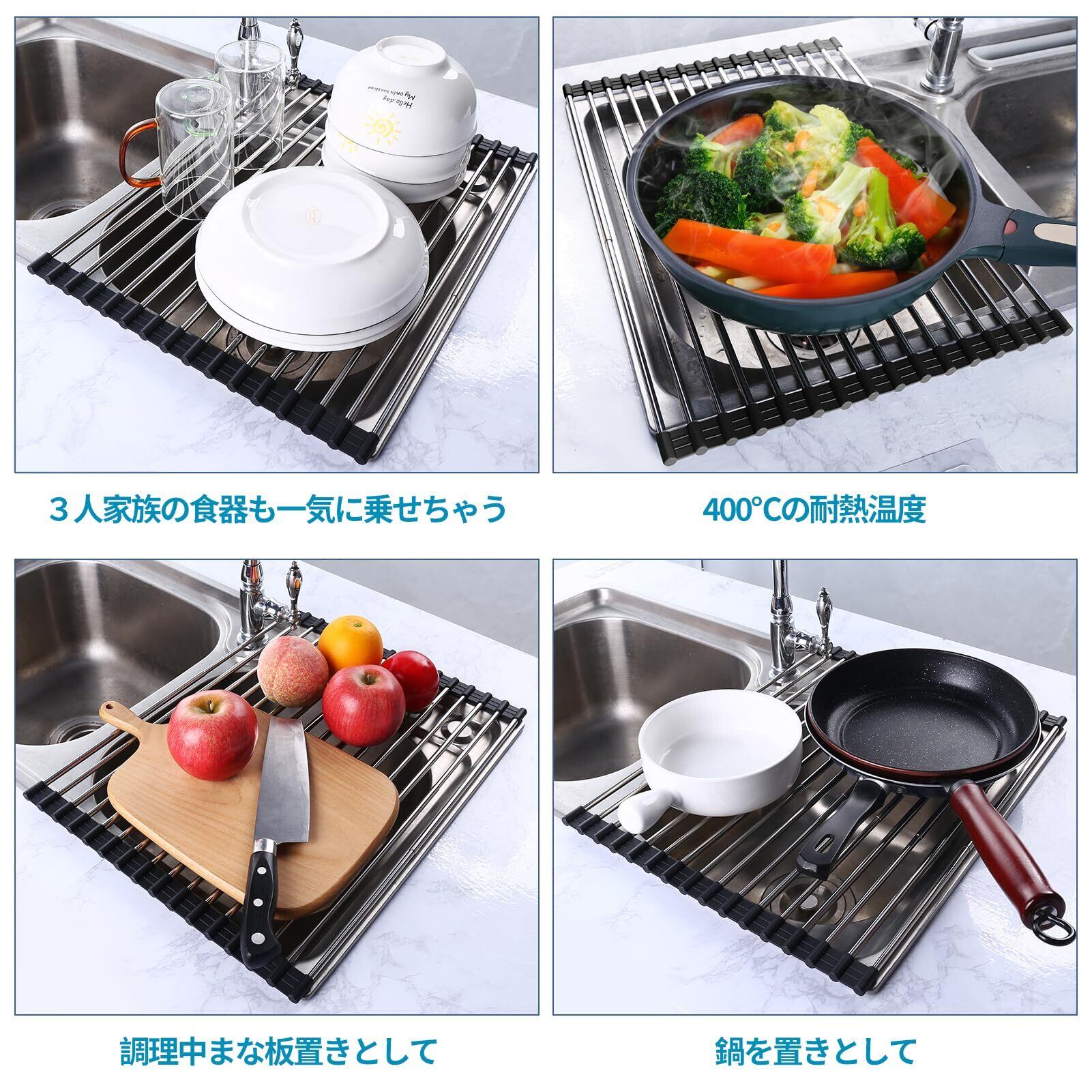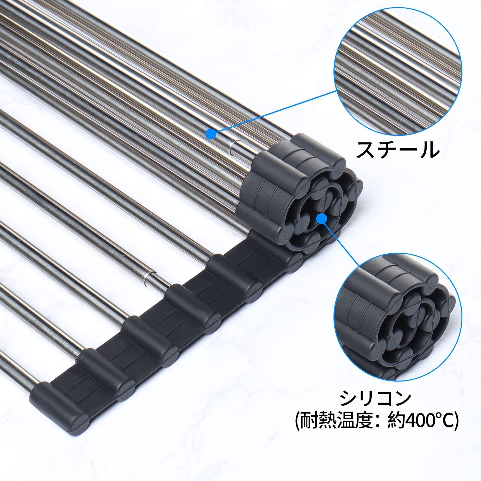 水切りラック 折りたたみ 伸縮タイプ水切り 抗菌 耐熱 錆びない 滑り止め サイズ調整可能 28-50cm 食器水切り 食器乾燥ラック 巻き収納 キッチン用品 (ブラック)