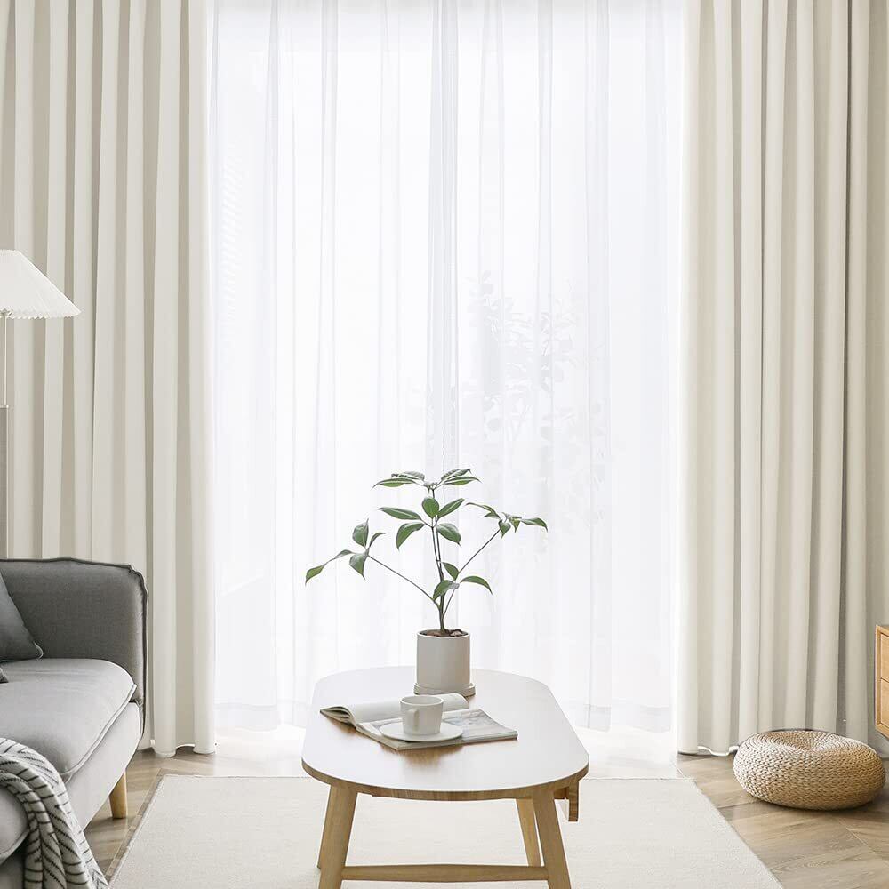AIFY カーテン 4枚セット 99.9%以上遮光 遮光カーテン 断熱 保温 防寒 防音 カーテン 遮光 無地 UVカット 昼夜目隠し おしゃれ 洗える 洗濯機対応 (カーテン2枚 レース2枚) 幅100cm×丈178cm ベージュ