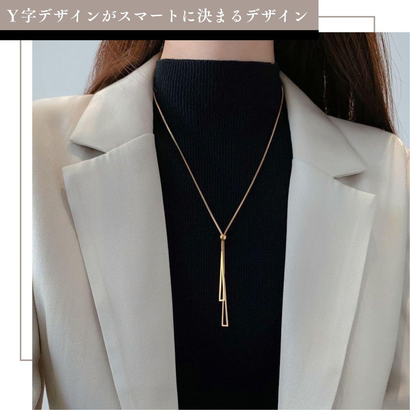 [ハルジオ] ロングネックレス レディース 人気 ネックレス ロング 長め ラリエット マンテル Y字 パール ゴールド シルバー チェーン アクセサリー ジュエリー ペンダント チョーカー 普段使い おしゃれ かわいい プレゼント 結婚式 (トライアングル・ゴールド)