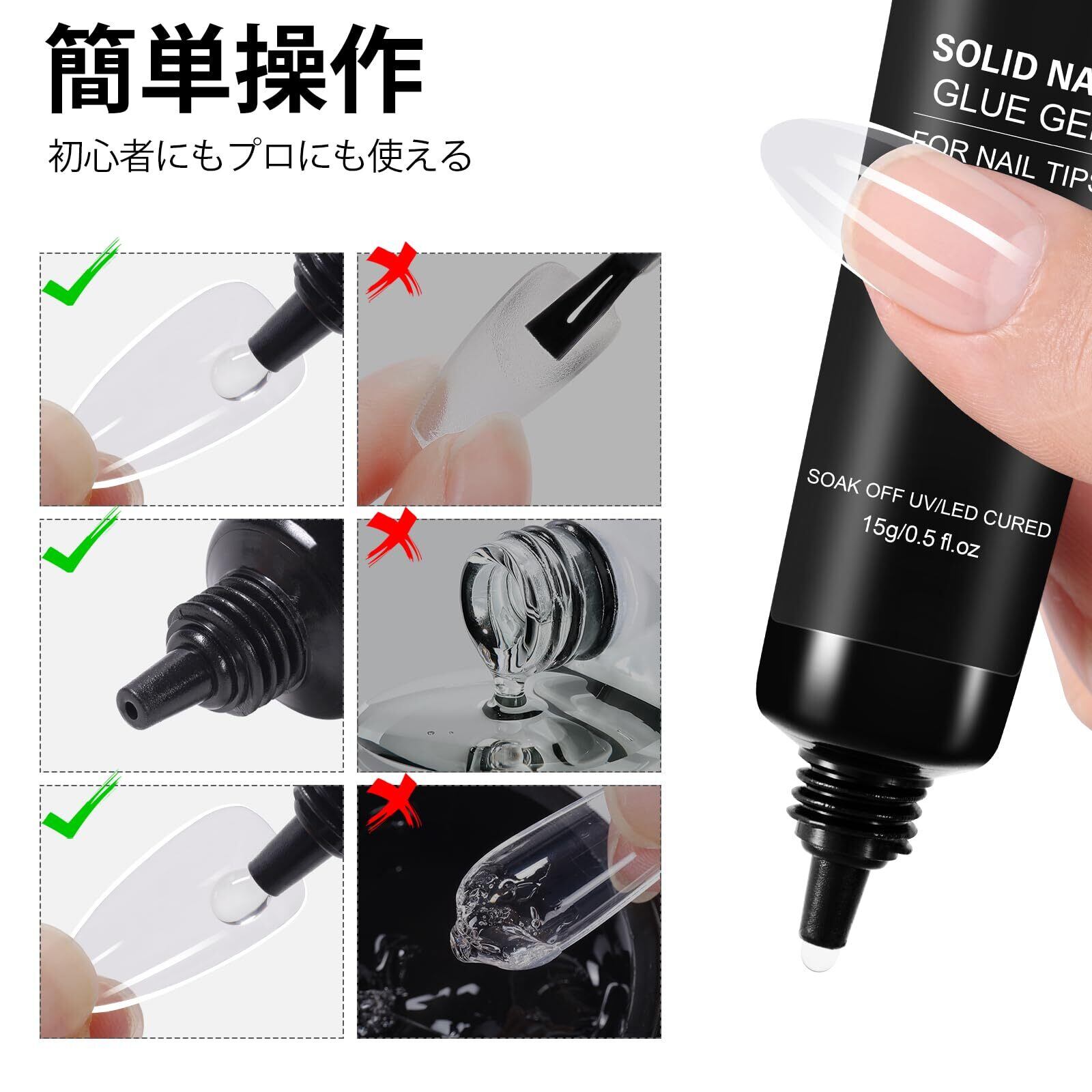 TOMICCA ネイルグルー ネイルチップ接着剤 ネイルチップ用 ネイル ジェル、フェイク ネイル用 ジェル のアップグレード、超強力硬化 ネイルチップ ジェル 長持ちす、装飾用 ネイル デザインと DIY ネイル