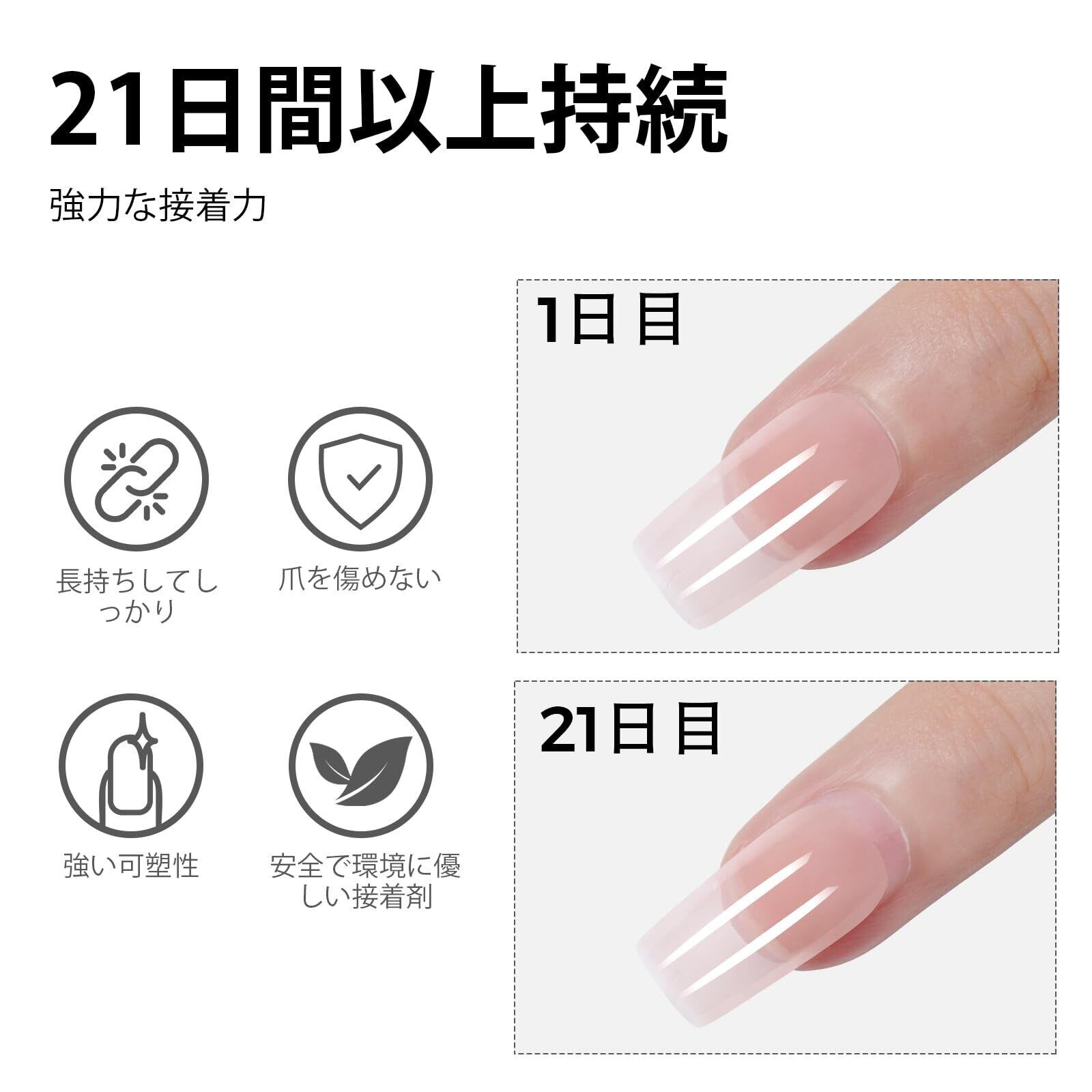 て肌に優しい: TOMICCA ネイルチップ接着剤は、革新的で環境に優しい成分で作られており、低臭、ビーガンおよび動物実験フリー、非毒性で爪と皮膚に無害です、耐久性があるだけでなく。