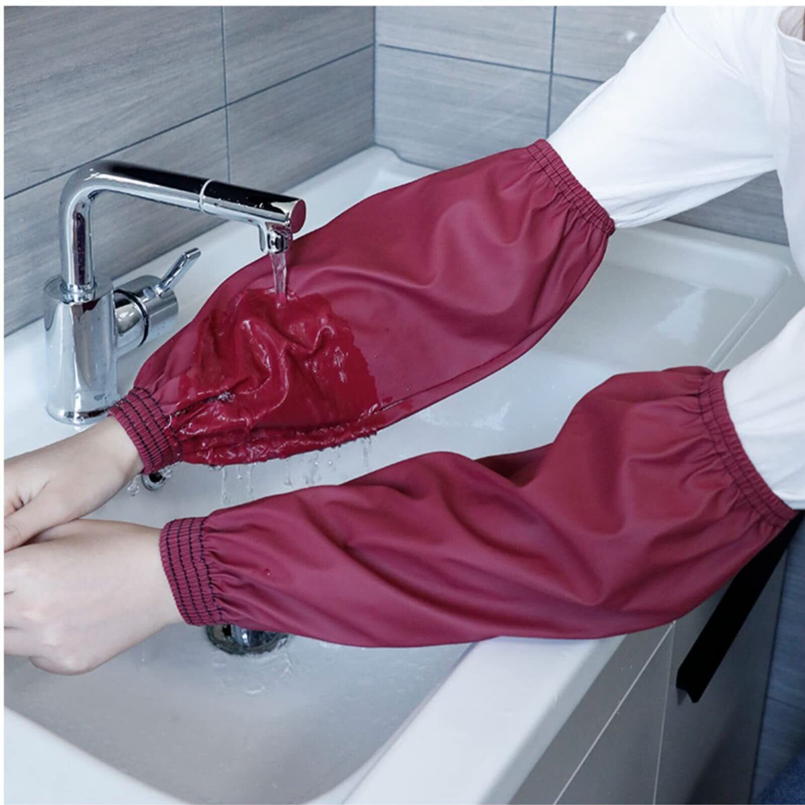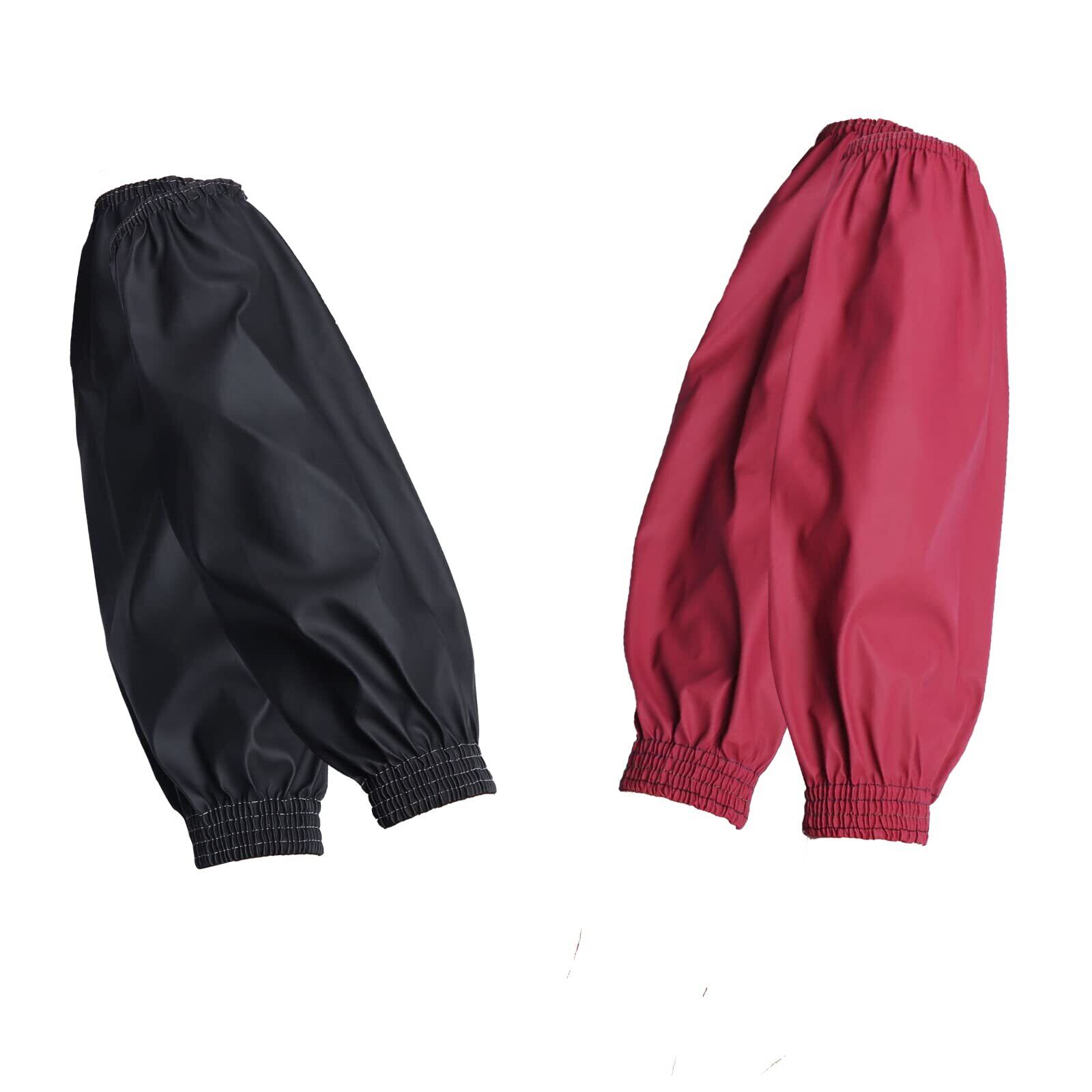 [Kaaipee] 防水アームカバー 作業用腕カバー 超撥水袖カバー 汚れ防止 PUレザー袖カフス 家庭用台所クリーニングスリーブ 業務用 調理 水仕事 男女兼用 2組セット ブラック/レッド