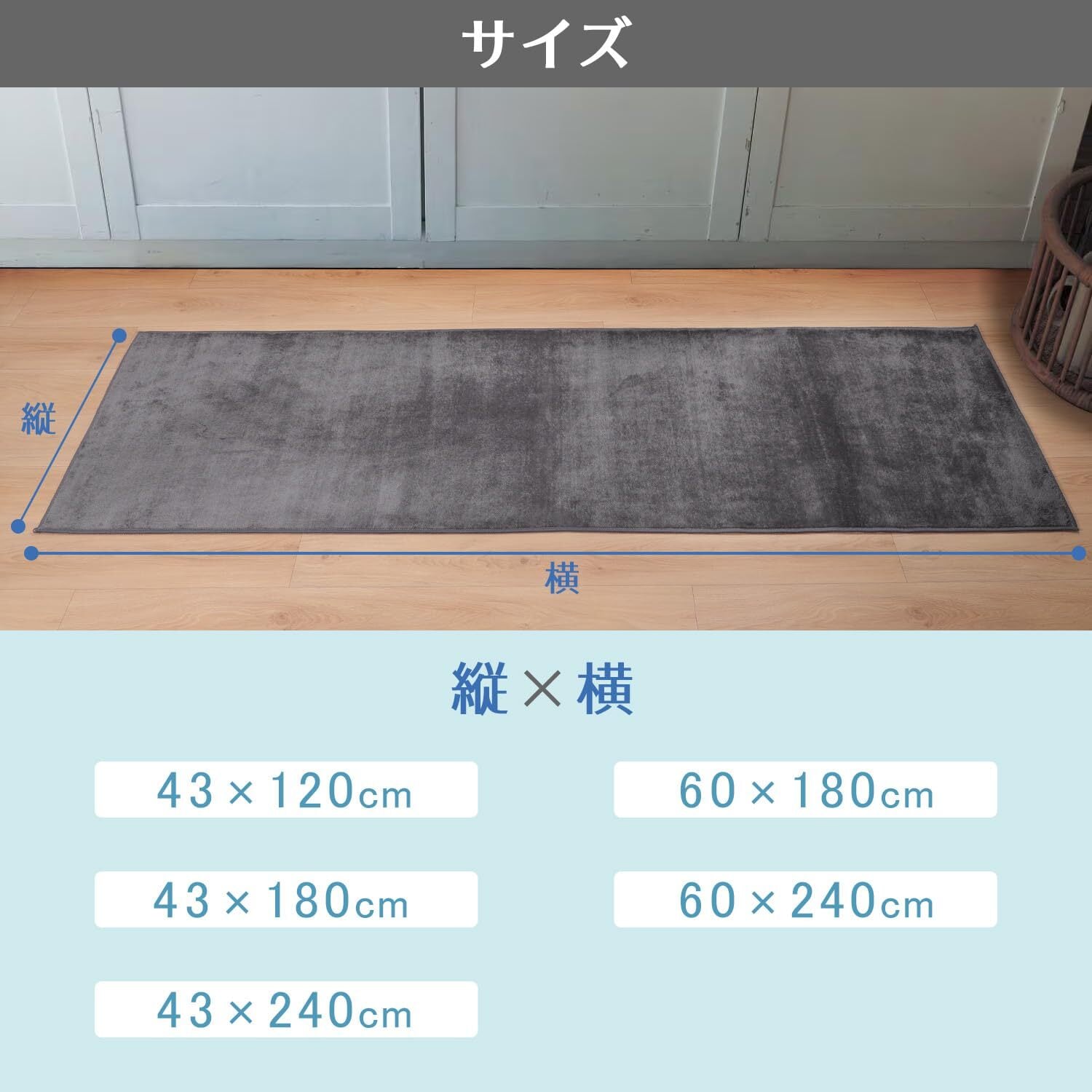 Tydle キッチンマット フランネルマット 43×180cm キッチンラグ マット 滑り止め付き フランネル生地 短毛 洗える ラグマット お手入れ簡単 床暖房対応 オールシーズンで使える おしゃれ シンプル 無地 グレー