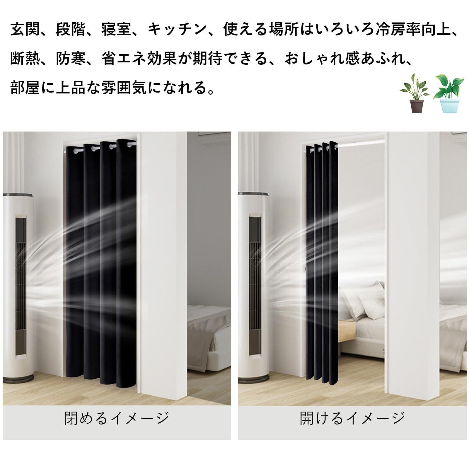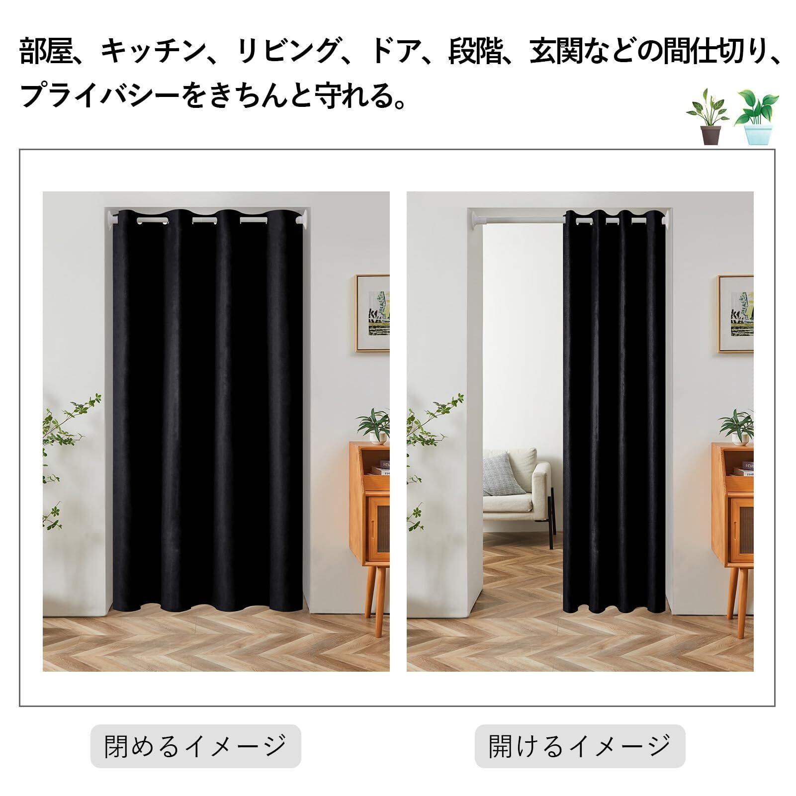 Topfinel カーテン 遮光 間仕切りカーテン 断熱 幅120cm 丈180cm 1枚入り ブラック ハトメ型 突っ張り棒 カーテン 仕切りカーテン ドアカーテン 目隠し 玄関 キッチン リビング