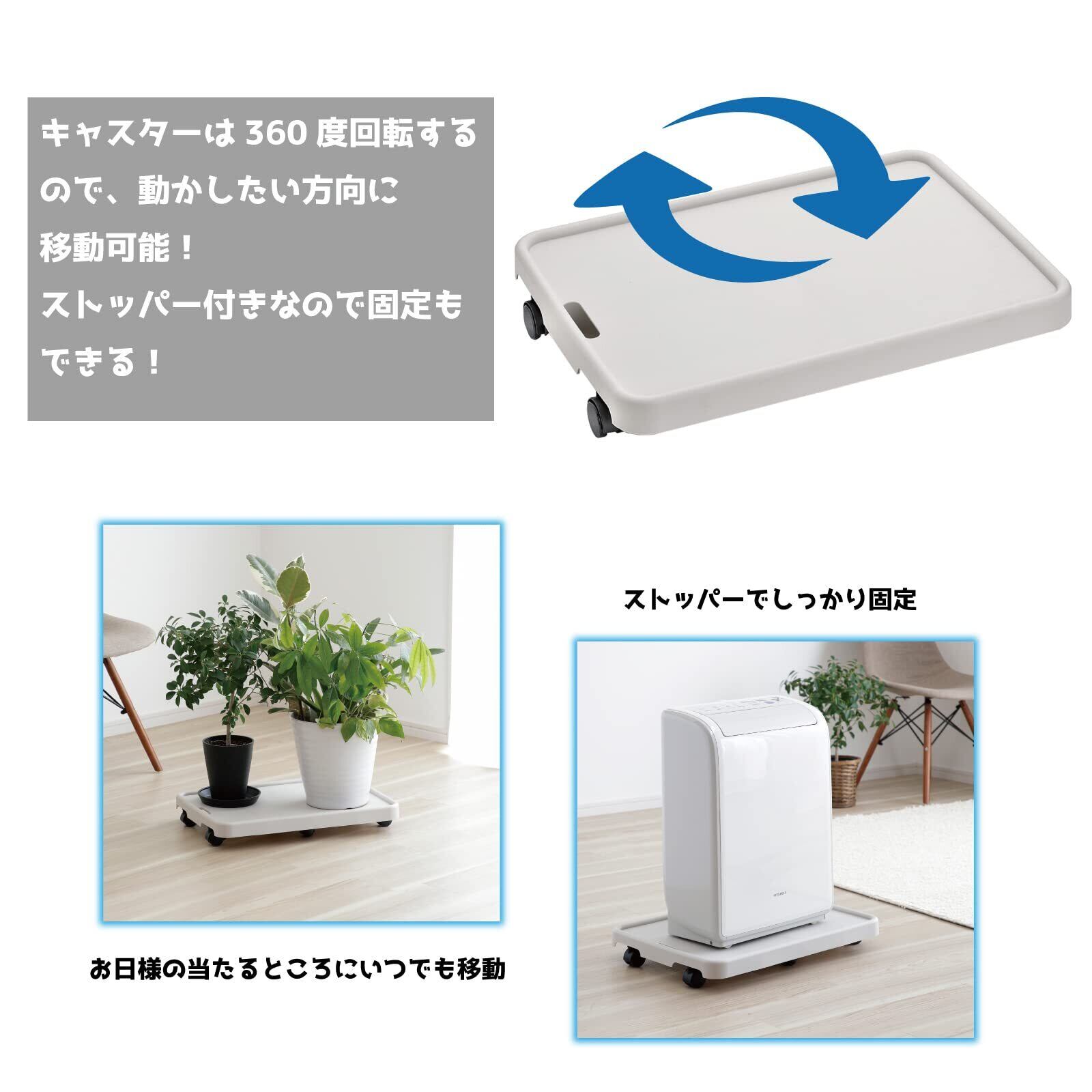 【キャスターは360度回転】動かしたい方向へ移動でき、ストッパー付きなので固定もできます。