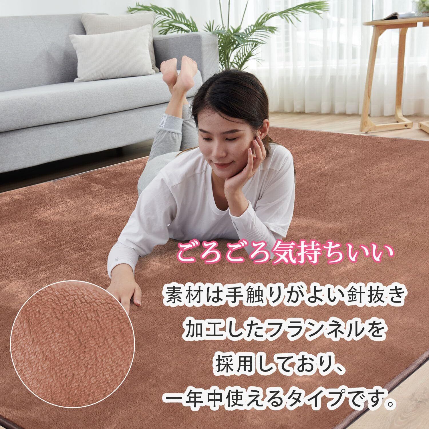 【オールシーズン対応】超費用対効果の高いカーペット3畳!このラグ3畳表面のフランネル素材は極細繊維のマイクロファイバーを使って、最高に繊細なフワフワ感で体をやさしく包み込み。夏でもドライな状態を保つ、冬はホットカーペットカバー3畳として使われます、一年オールシーズンを通して快適にご使用いただけます。