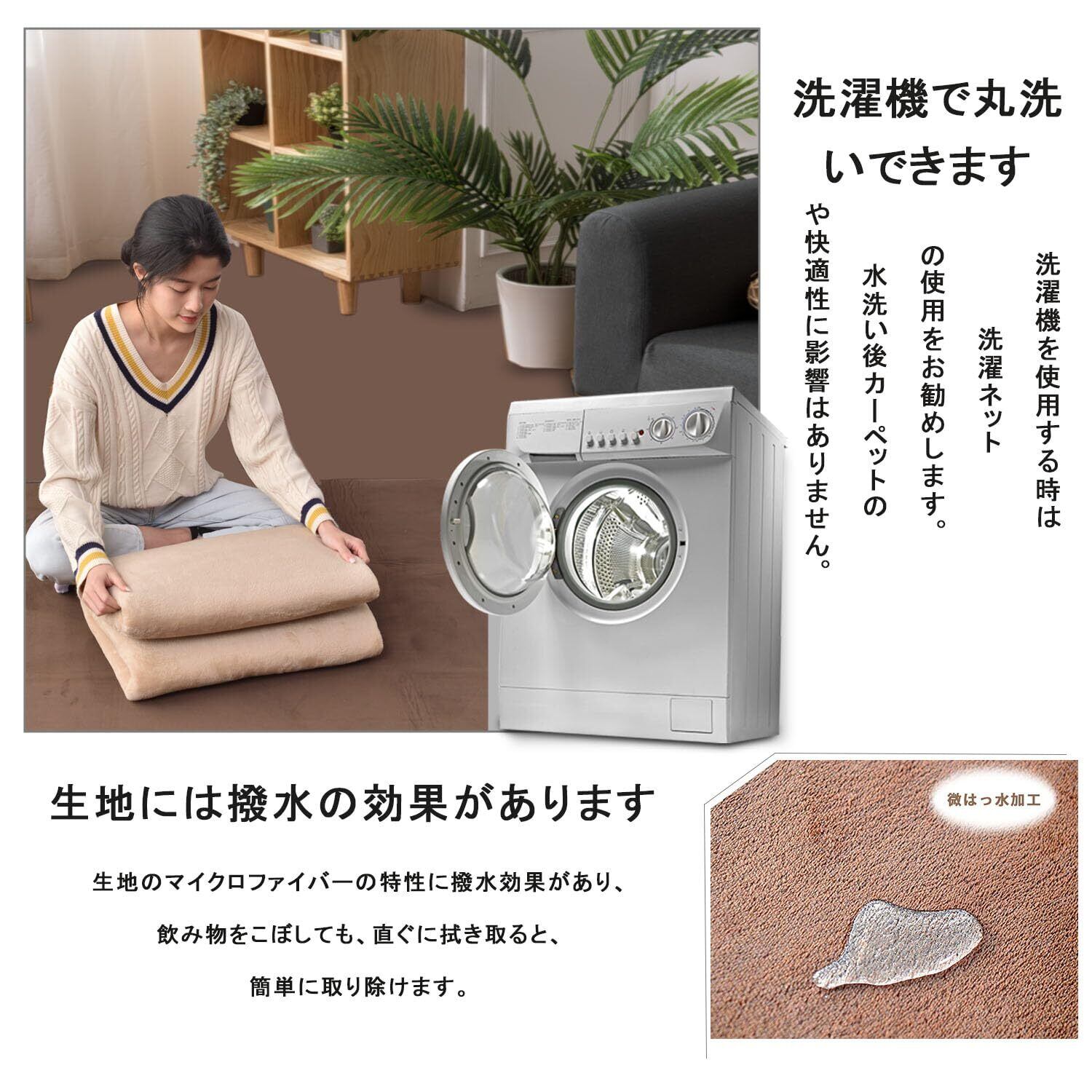 【丸洗いOK 】この床暖房対応カーペット3畳はお手洗いと洗濯機洗い(洗濯ネットの使用をお勧め)に対応しています。掃除機で掃除することができる、洗えるラグ3畳のフランネルの毛足が適切な長さで、ゴミやほこりが絡まりにくい。