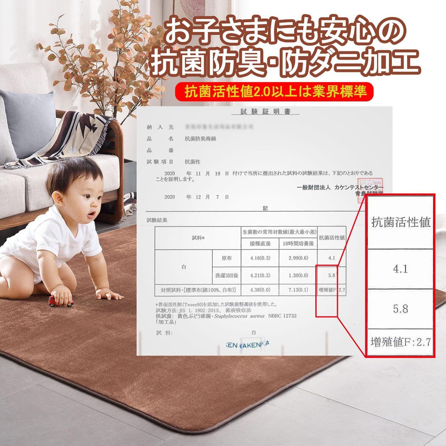 【抗菌防ダニ】ラグマット3畳直接肌に触れるものだから、安心・安全にこだわりました。カーペット3畳の生地は通気性に優れており、菌の繁殖を抑える「抗菌防臭防ダニ」加工済で、そのため、アレルギーが気になる方や、このじゅうたん安心してご利用ください。