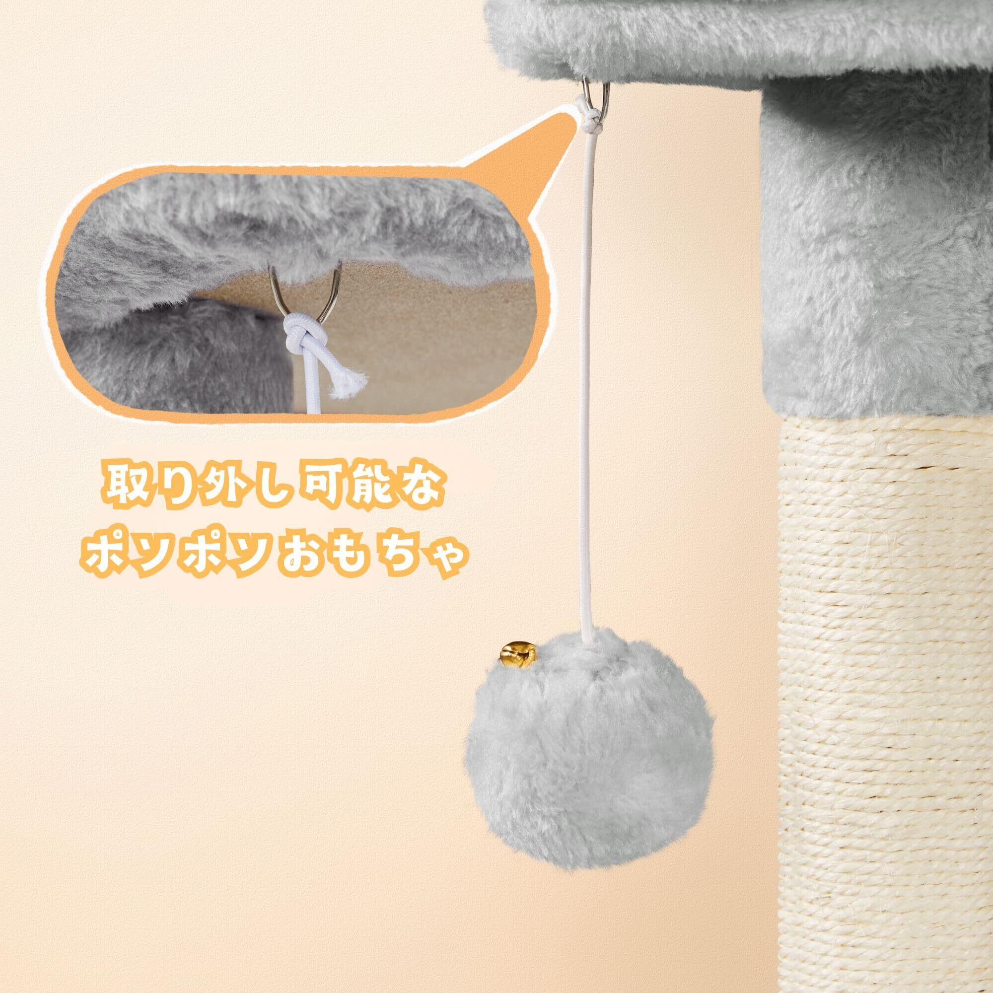 【省スペースで楽しさ満載】コンパクトながら、展望台・隠れ家・爪とぎポール・ポンポンおもちゃなど、猫ちゃんの「大好き」が詰まった多機能タワー。お部屋の隅にもすっきり収まります。
